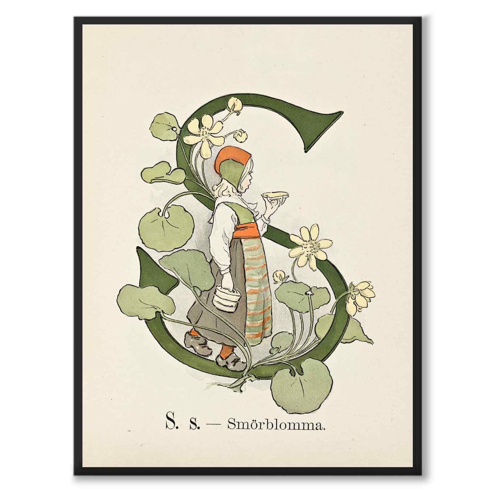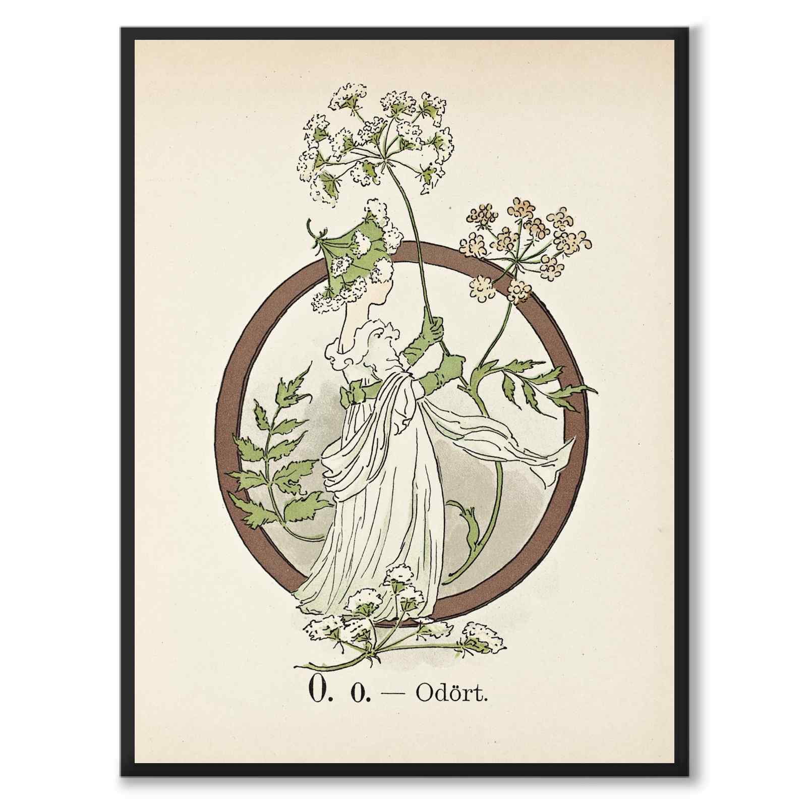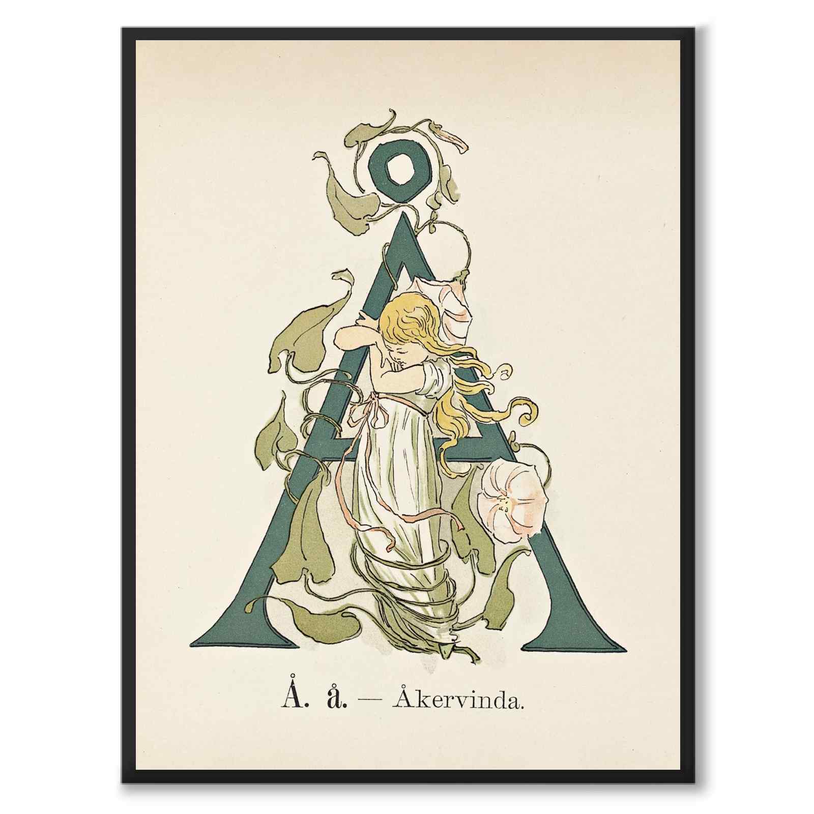 Plakat med bokstavene fra Prinsens blomsteralfabet av Ottilia Adelborg fra 1892. Ottilia Adelborg var en kjent svensk kunstner og forfatter som har blitt kjent som skaperen av den svenske barneboken.