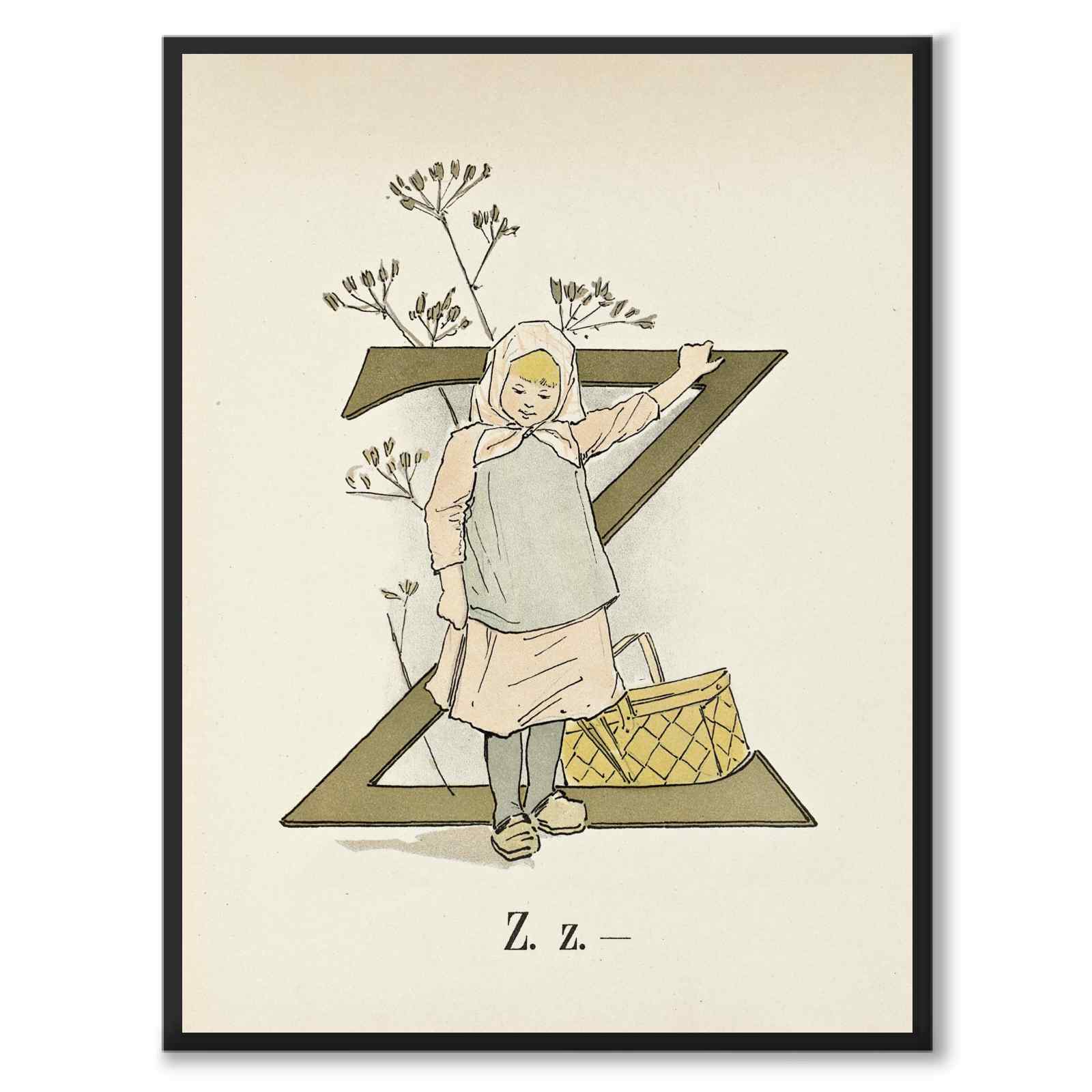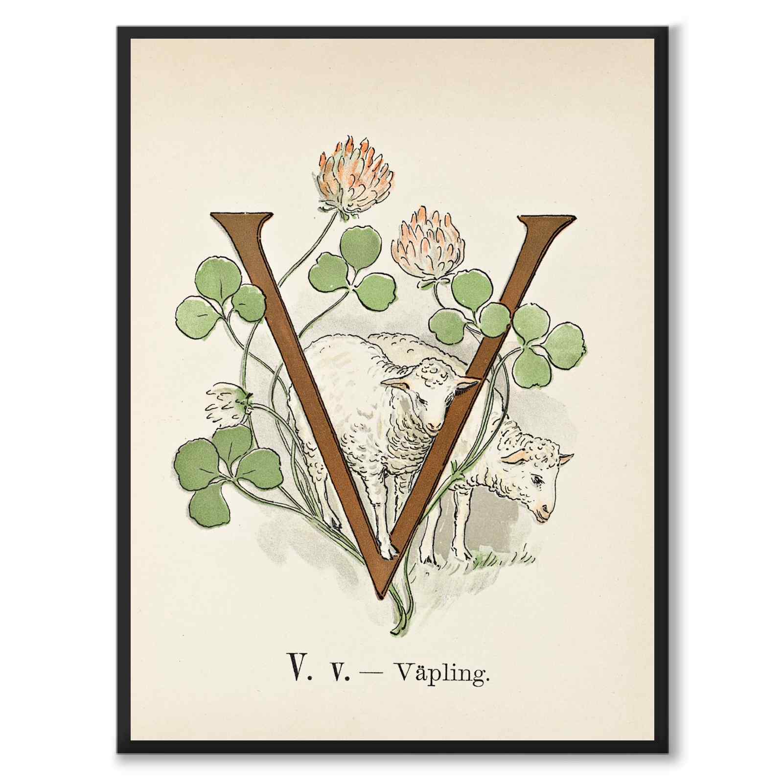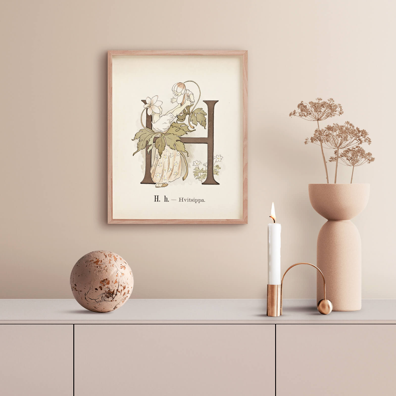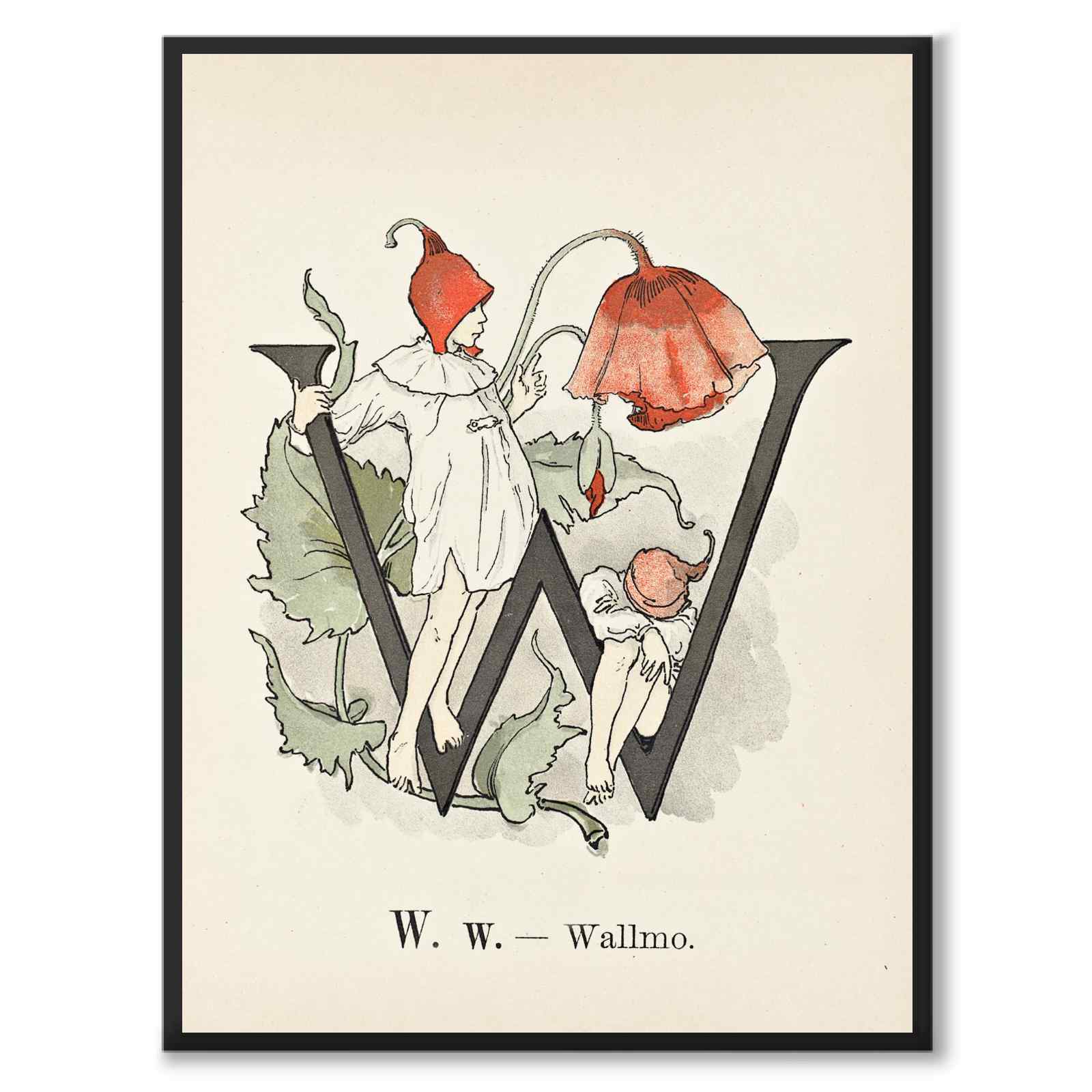 Plakat med bokstavene fra Prinsens blomsteralfabet av Ottilia Adelborg fra 1892. Ottilia Adelborg var en kjent svensk kunstner og forfatter som har blitt kjent som skaperen av den svenske barneboken.