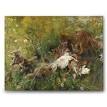 Lerretsbilde med et maleri av Bruno Liljefors fra 1886. Motivet består av en familie med røde rever i sitt naturlige miljø med byttedyr, en hvit fugl.
