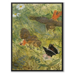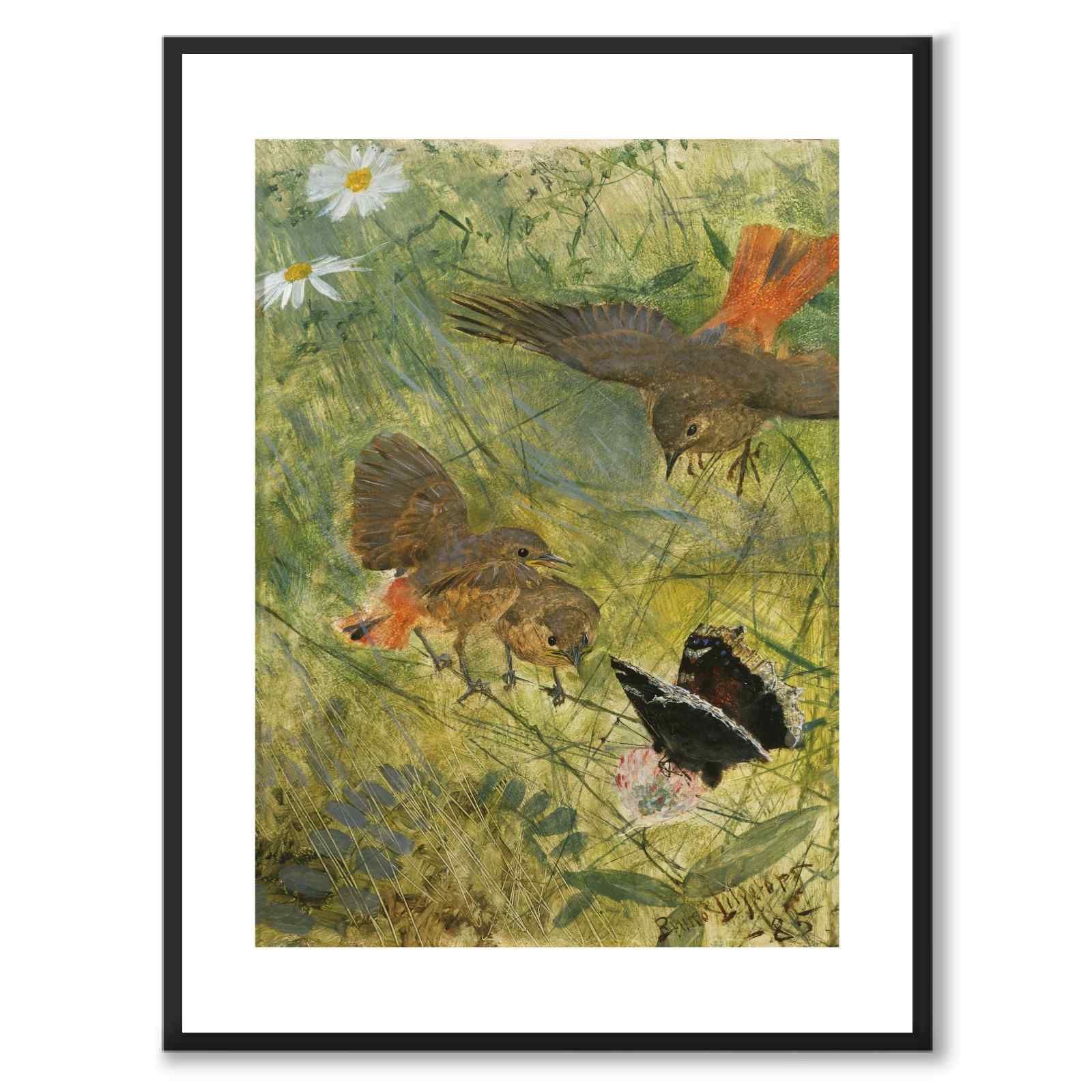 Plakat med maleriet Rødstjert og sommerfugl av Bruno Liljefors fra år 1885.