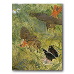 Lerretsbilde med maleriet Rødstjerter og sommerfugl av Bruno Liljefors fra 1885.