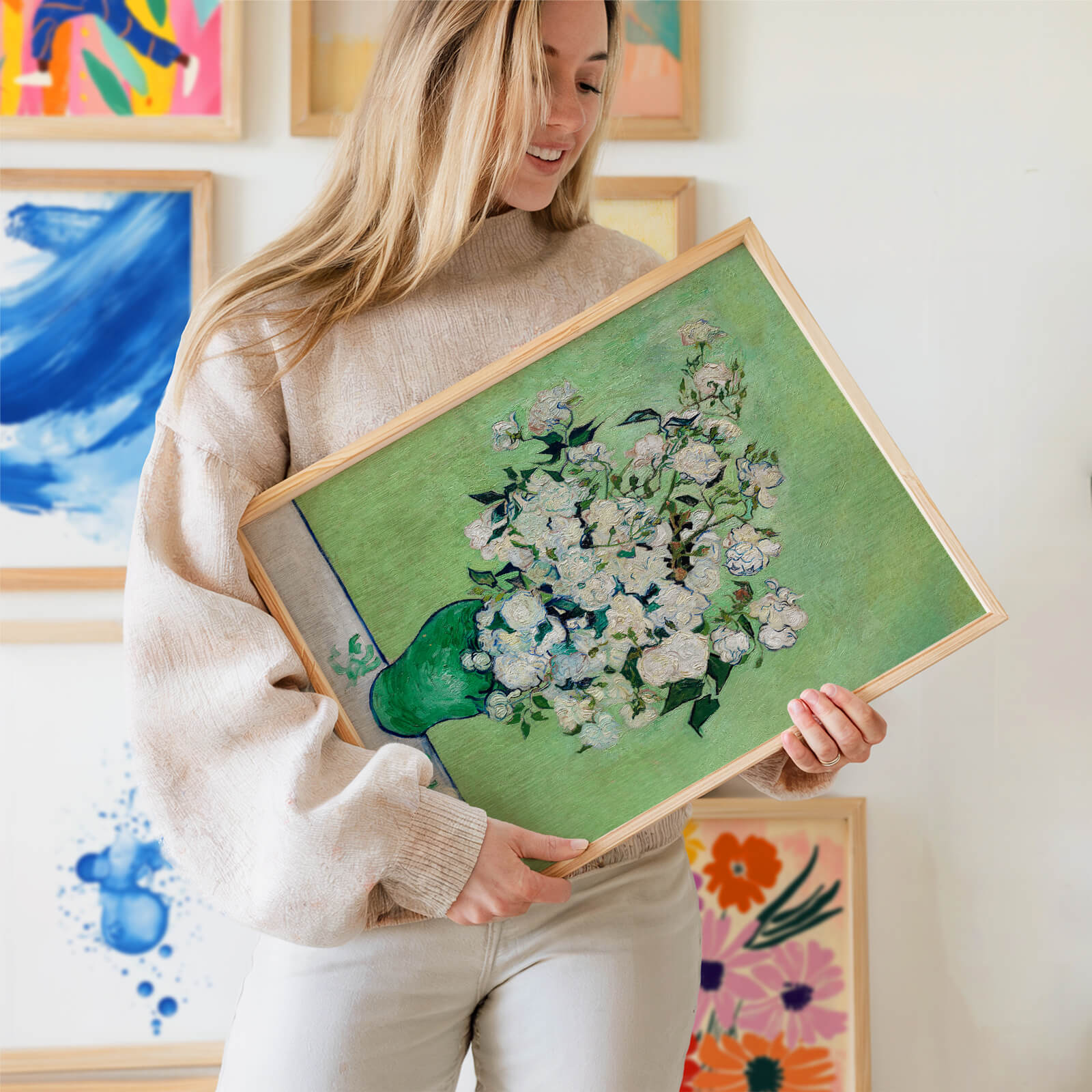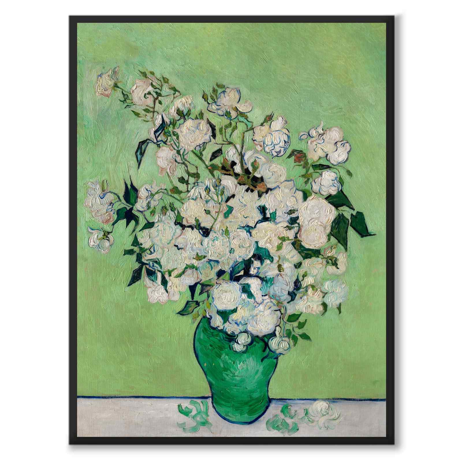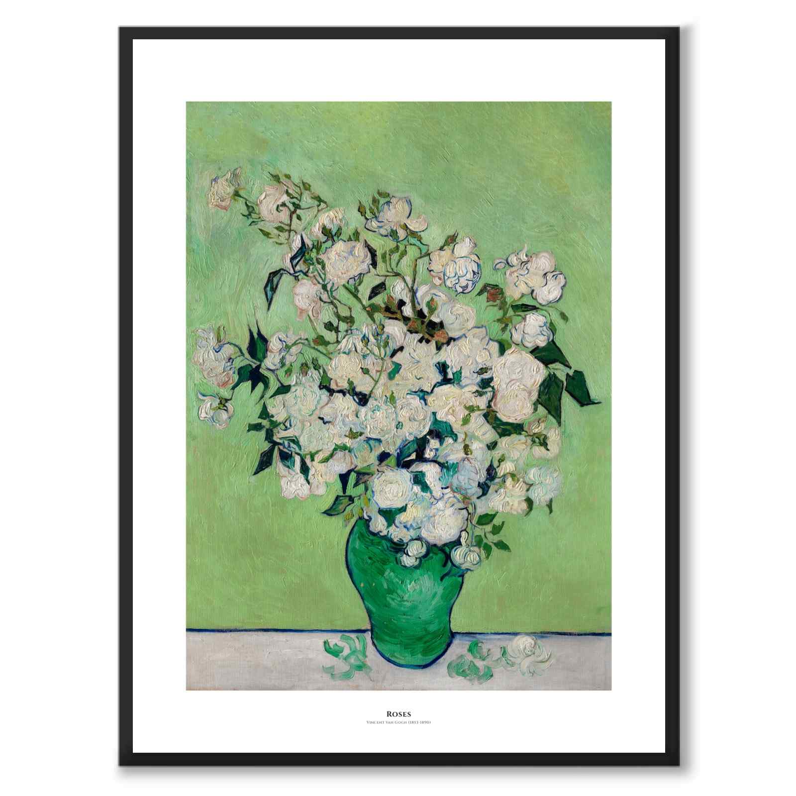 Plakat med det vakre motivet Roser fra 1890, laget av impresjonistkunstneren Vincent van Gogh.