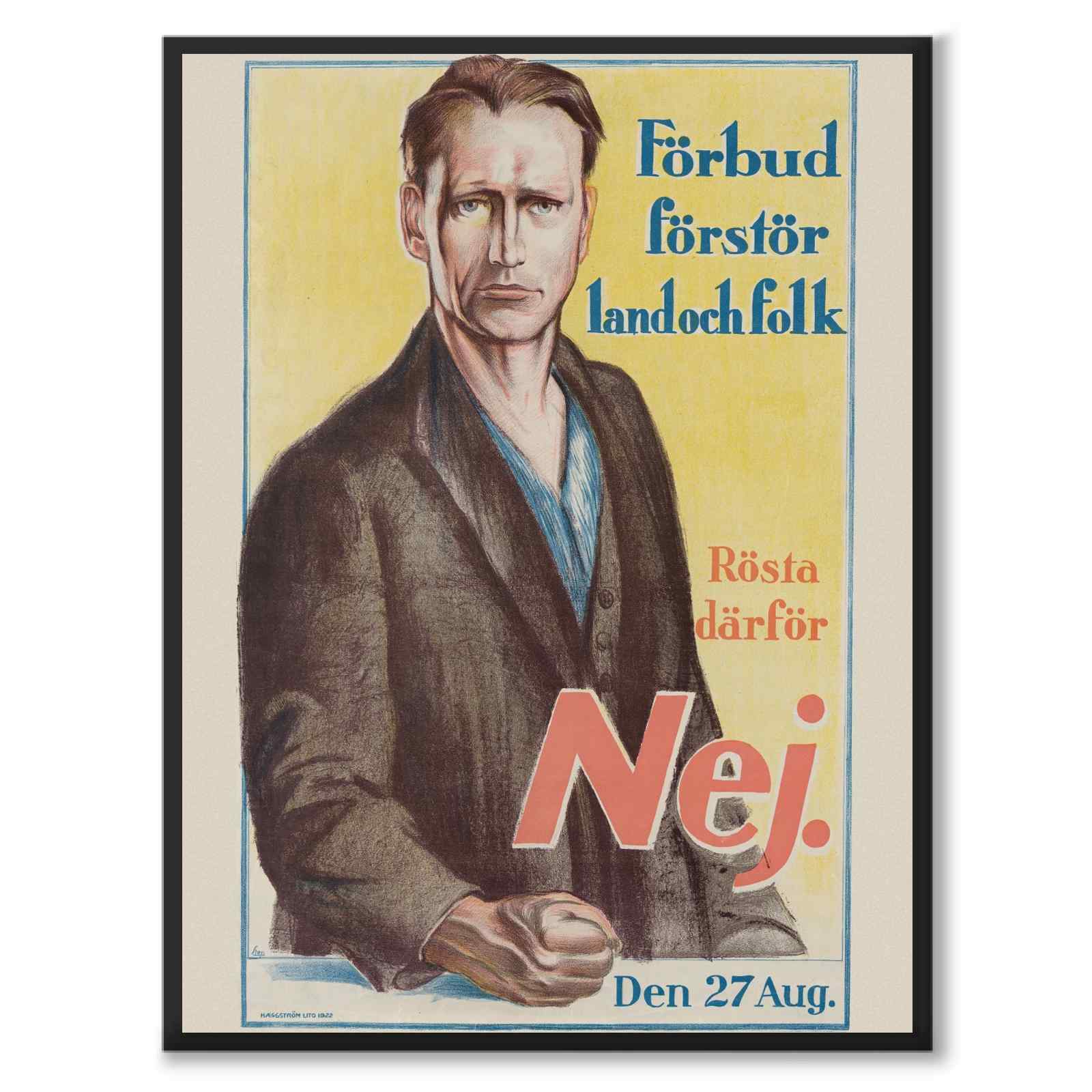 Innlegg med en kjent propagandaplakat mot det foreslåtte alkoholforbudet før folkeavstemningen i 1922. På bildet ser vi teksten "Forbud ødelegger land og folk. Stem derfor nei 27. aug".