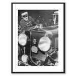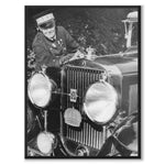 En unik plakat med en luksuriøs Cadillac i 1930 som tilhører kongefamilien. På bildet ser vi Kongens sjåfør pusse bilen, som er dekorert med små kroner på panseret, lysene og grillen. Utsmykningen gjør at det ikke er tvil om hvem bilen tilhører.