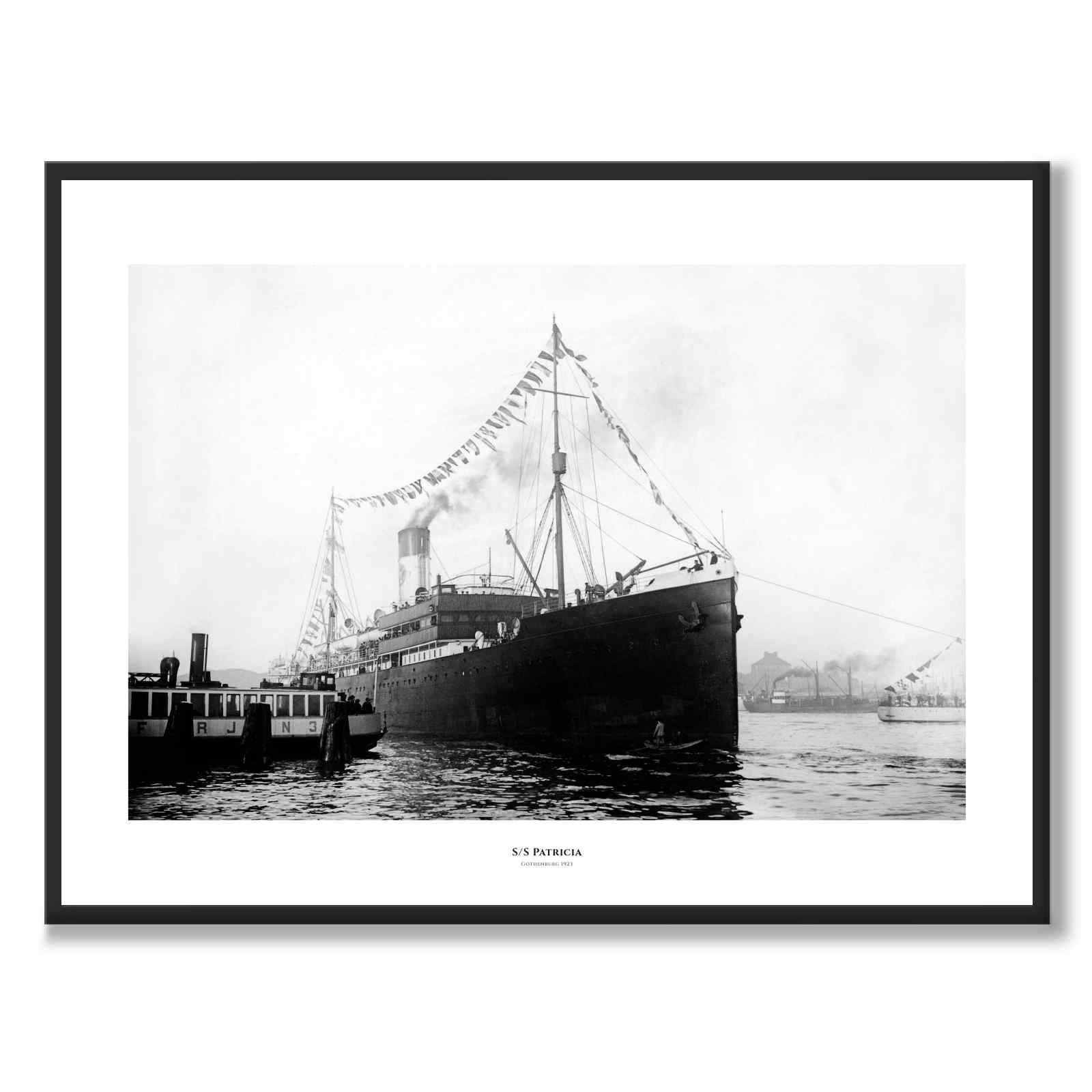 Det svenske rederiet Svenska Lloyds skip S/S Patricia ankommer havnen i Gøteborg 19. desember 1923. Skipet opererte ruten Gøteborg-London. Blant passasjerene om bord var kronprinsparet Gustaf Adolf og kona Louise Mountbatten.