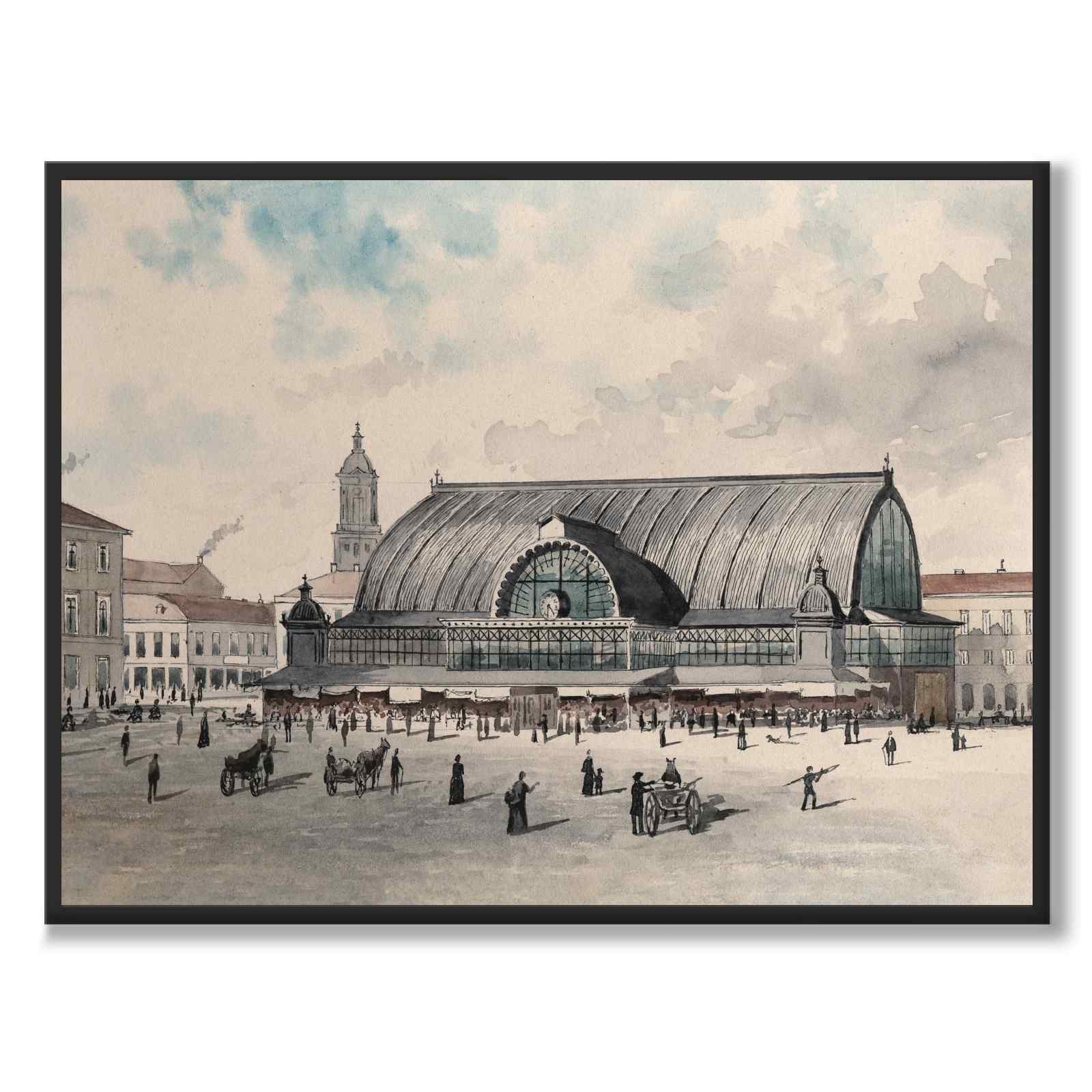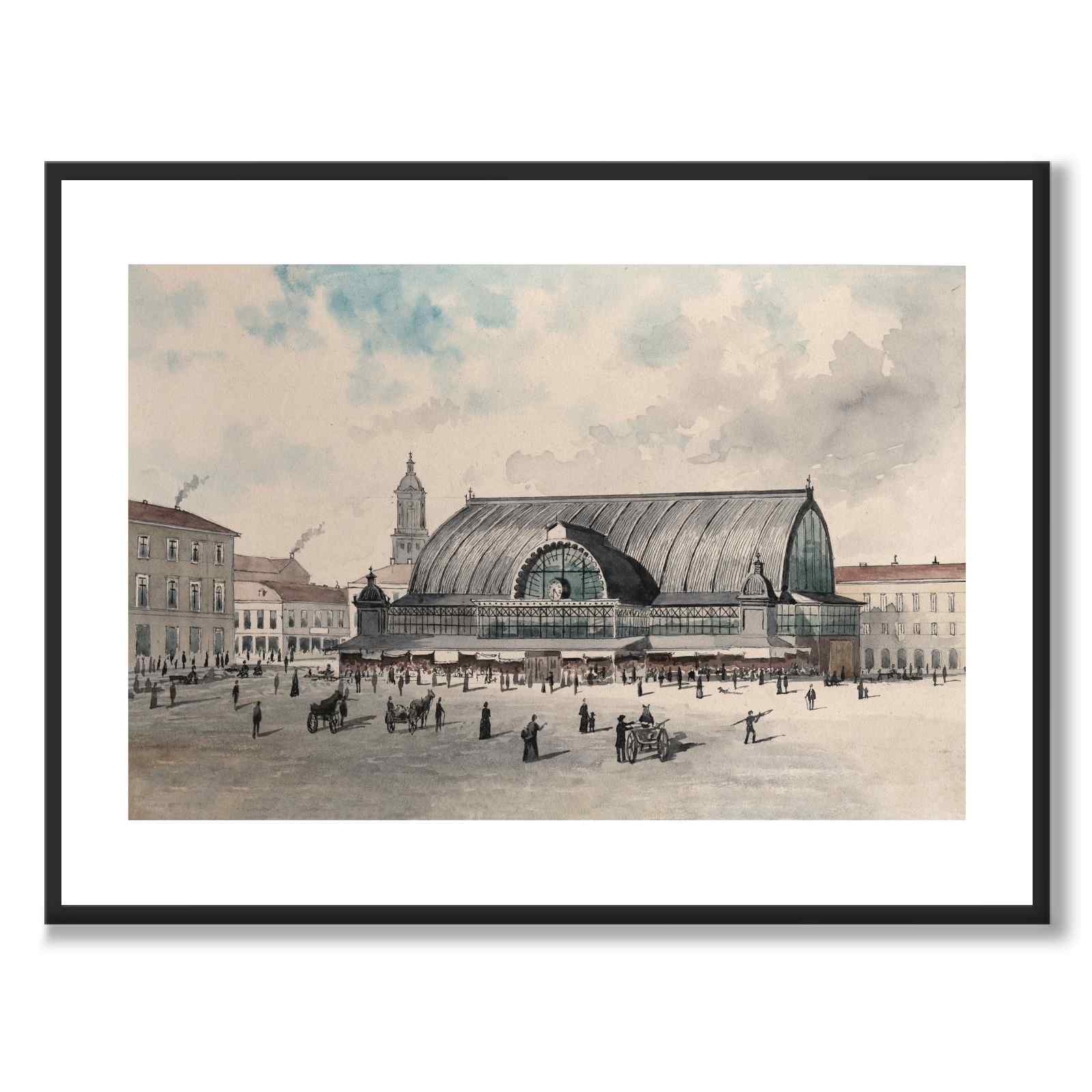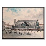 Plakat med vakkert maleri av Saluhallen på Kungstorget i Gøteborg. Kunstverket ble skapt av den danske kunstneren Ludvig Messmann i 1890 og er en del av en hel serie vakre Gøteborg-motiver.