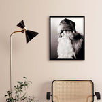 Plakat med et kunstnerisk bilde av en mann utkledd som julenisse. Bildet er fra 1941 og kommer fra en av Nordiska Kompaniets julekampanjer.