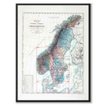 Øverst til venstre ser vi teksten " Kart over Sverige og Norden eller Skandinavia, Viser Fylkeslandskap- og Fylkesinndelingen, samt Planen til det større kartet i 8. ark."