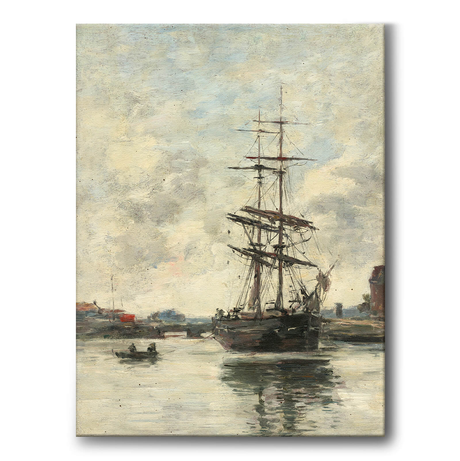 Lerretstrykk med maleriet Ship on the Touques fra 1888. Dette fantastiske maleriet er laget av den franske kunstneren Eugène Boudin. Han var en landskapsmaler og regnes som en forløper for impresjonismen.