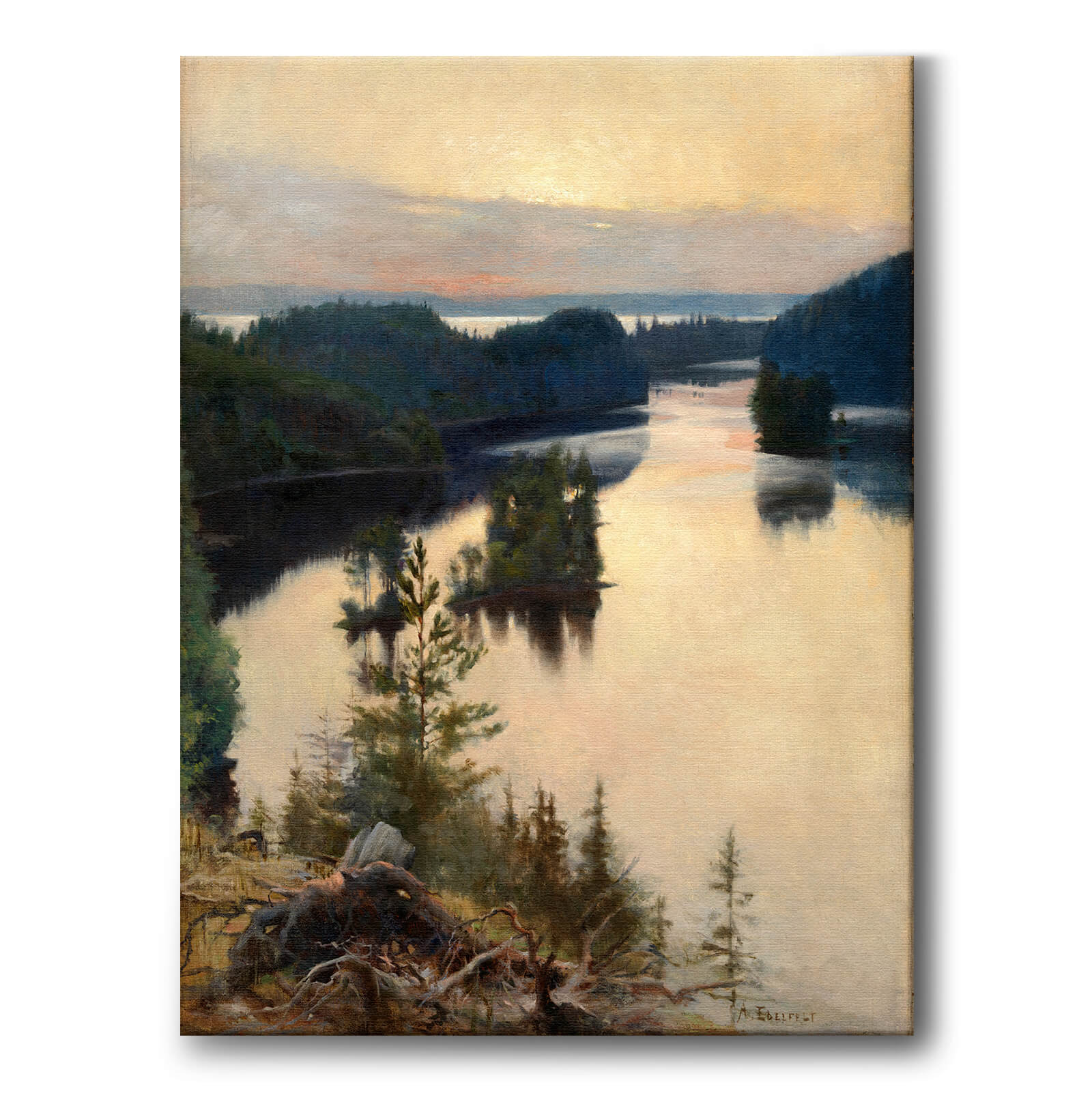 Lerret med det vakre maleriet Sunset av Albert Edelfelt fra 1890.