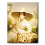 Thompson utnyttet moten for allegoriske og romantiske portretter, og konstruerte sentimentaliserte visjoner om unge kvinner. I maleriet av den vakre kvinnen ser vi henne utsmykket i sesongens nyeste stil og plassert i en frodig hage komplett med den nyklassisistiske marmorurnen. Hennes gripende blikk og tilfeldige oppførsel kompletteres av Thompsons lysinfunderte håndtering av farger.