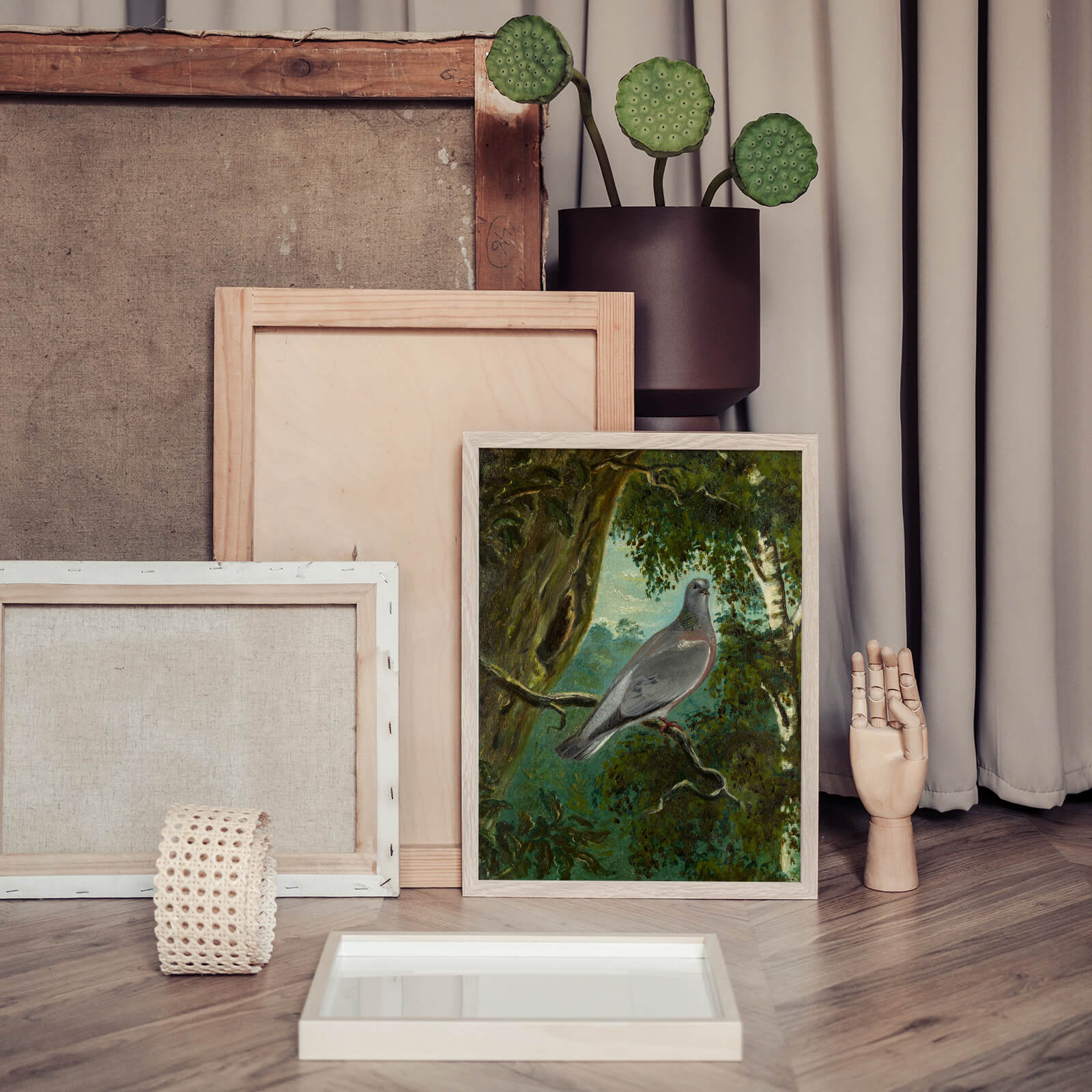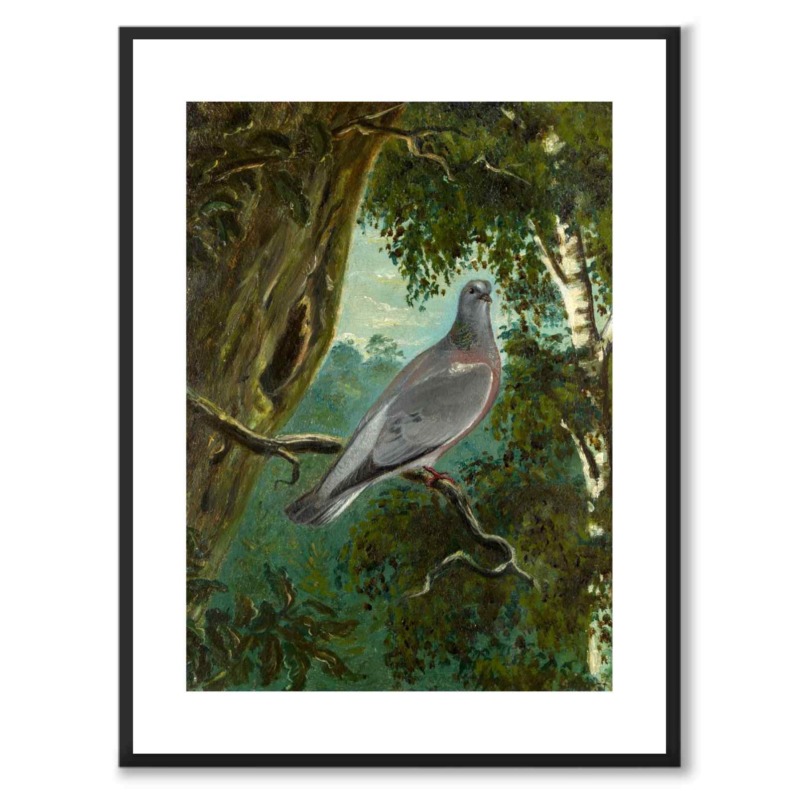 Plakat med maleriet Skogsdua av Bruno Liljefors, Sveriges tidenes mest kjente naturmaler. Skogsduva er et av Brunos tidligere verk og viser et rolig skogsinteriør med vakre grønntoner.