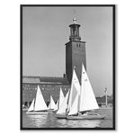 Fotografiet forestiller seilbåter foran Stockholms rådhus under Skoleungdomsregattaen i Stockholm, et arrangement der unge seilere konkurrerte i sentrale Stockholm. Arrangementet fant sted i Riddarfjärden, midt i byen, og gjenspeiler både den store interessen for seiling blant unge og en tid da friluftsliv og sport ble sett på som en viktig del av ideen om et folkehjem.
