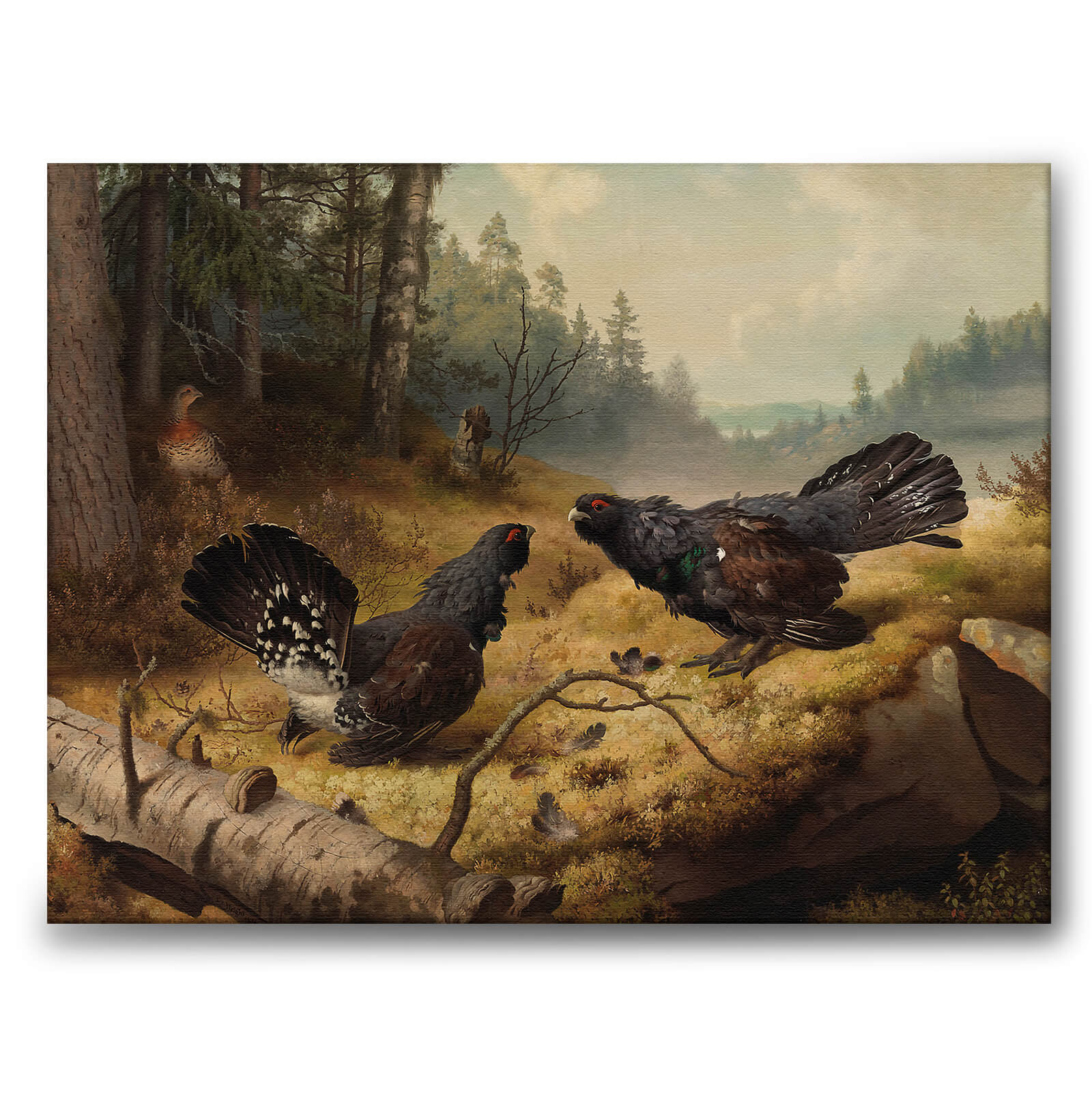Lerret med maleriet "Skjemper mot ryper", opprettet i 1886 av Ferdinand von Wright.