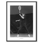 Plakat med et vintagefotografi på Ted Gärdestad (1956–1997) i 1977, midt i en tenniskamp under trening.