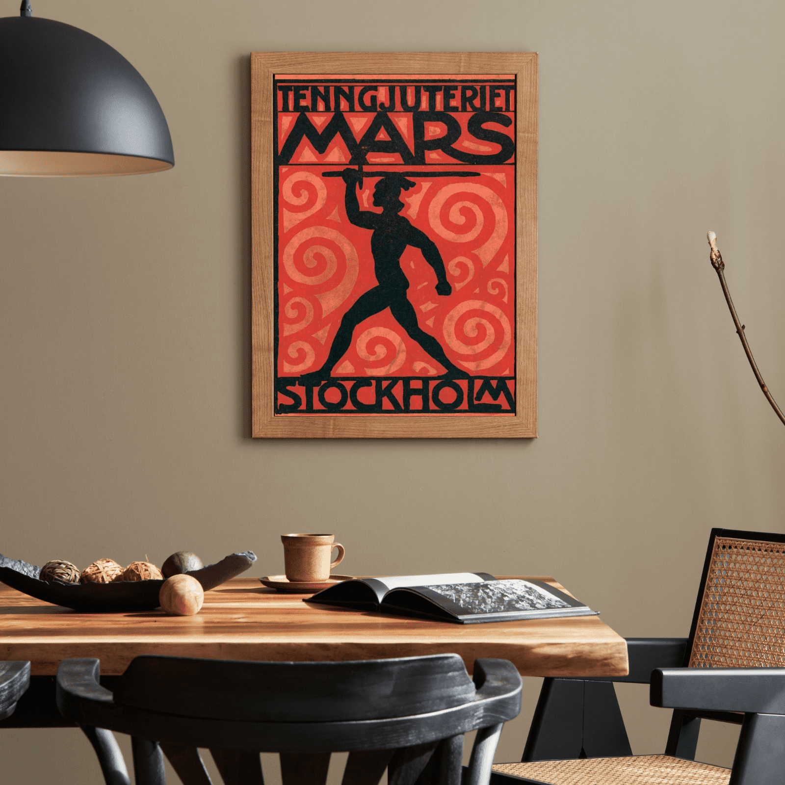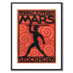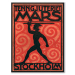 Plakater med motiver av Tenngjuteriet Mars . Juteriet var basert i Stockholm og en av Sveriges ledende produsenter av tinnfigurer. Grunnlagt i 1915, ble det kjent for sin eksepsjonelle kvalitet. I sin storhetstid på 1930-tallet var tinnsoldater og andre tinnfigurer populære leker. Selv om lekene har endret seg over tid, har interessen for å samle disse figurene holdt seg. Bildet viser en trykt versjon av selskapets navn og symbolet, krigsguden Mars.
