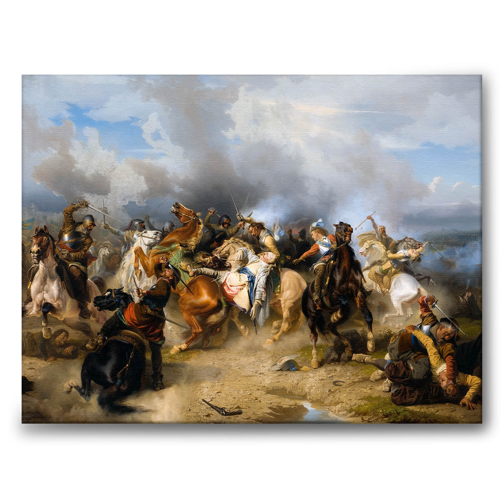 Lerret med maleriet Gustav II Adolfs død i slaget ved Lützen fra år 1855.