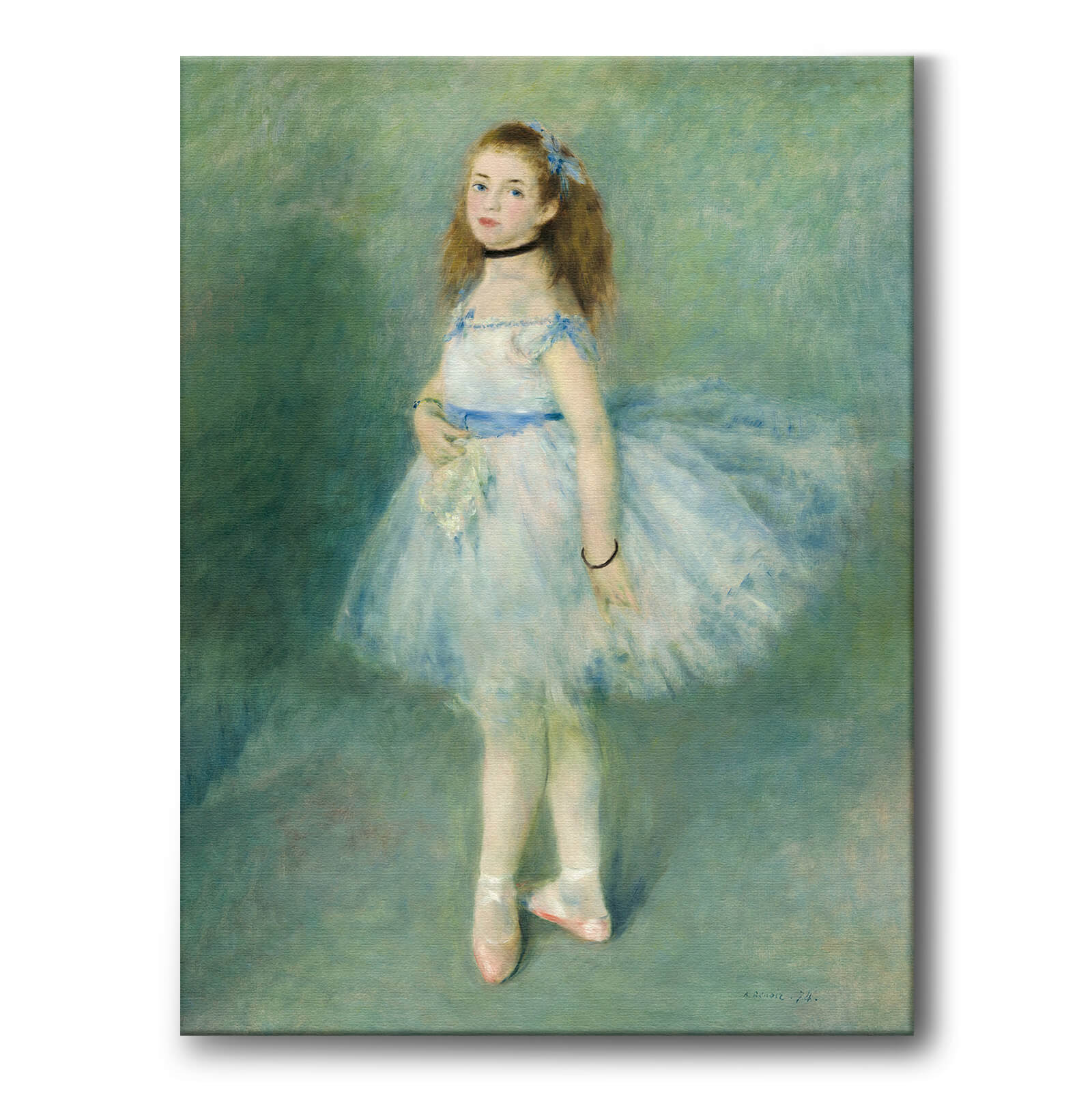 Lerret med et vakkert maleri laget i 1874 av Auguste Renoir - en fransk maler og skulptør. Maleriet The Dancer er et fantastisk helkroppsportrett av en ballerina i en lyseblå kjole som sammen med bakgrunnen skaper en nydelig fargeskala.
