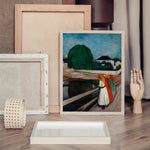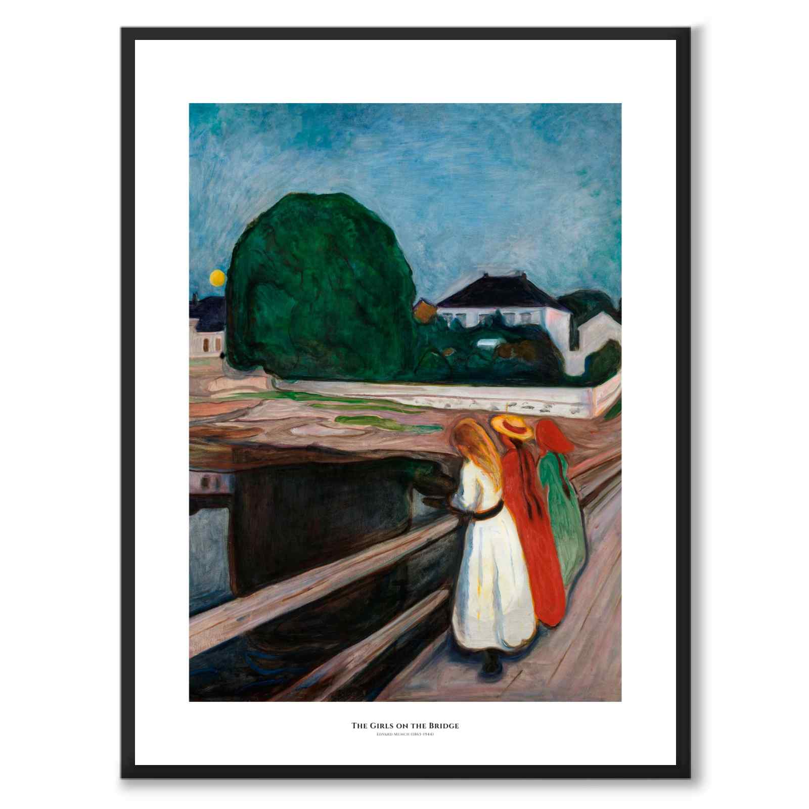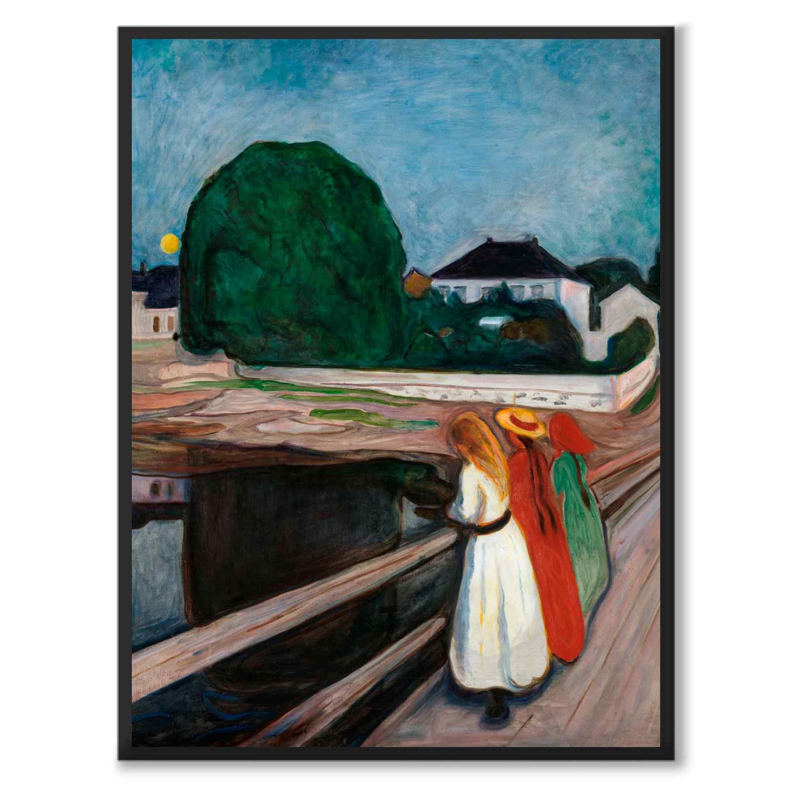 Plakat med maleriet Pikene på broen , eller Jentene på broen , av den ikoniske norske artisten Edvard Munch. Verket ble malt i 1901 og forestiller noen jenter på en bro i Munchs sommerby, den lille byen Åsgårdstrand i Norge.