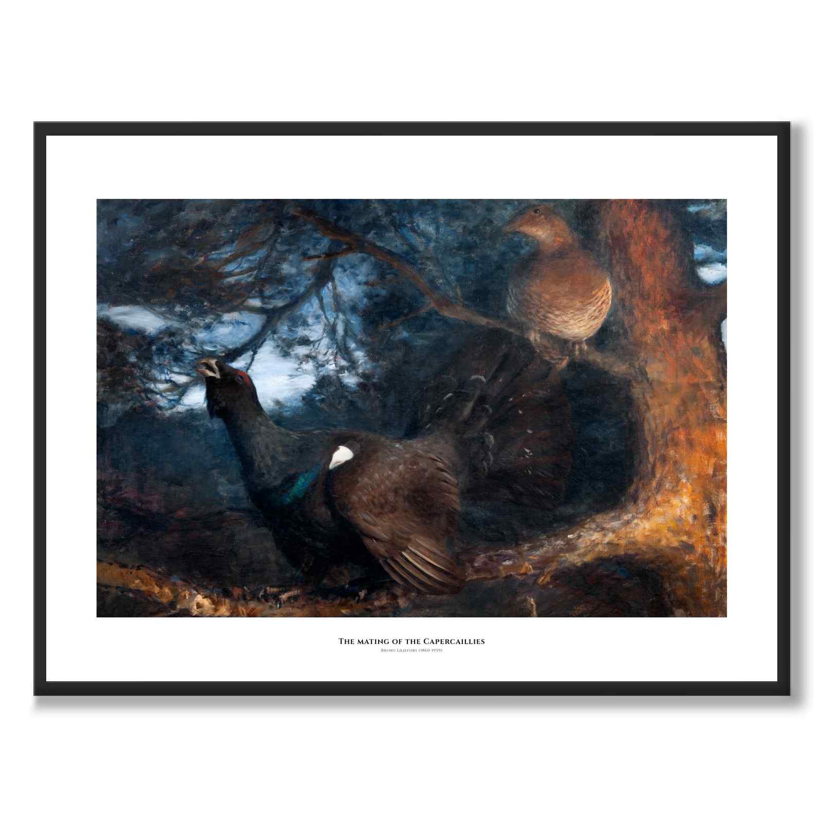 Plakat med et vakkert maleri av Bruno Liljefors fra 1895 som viser to rådyr i paringstiden.