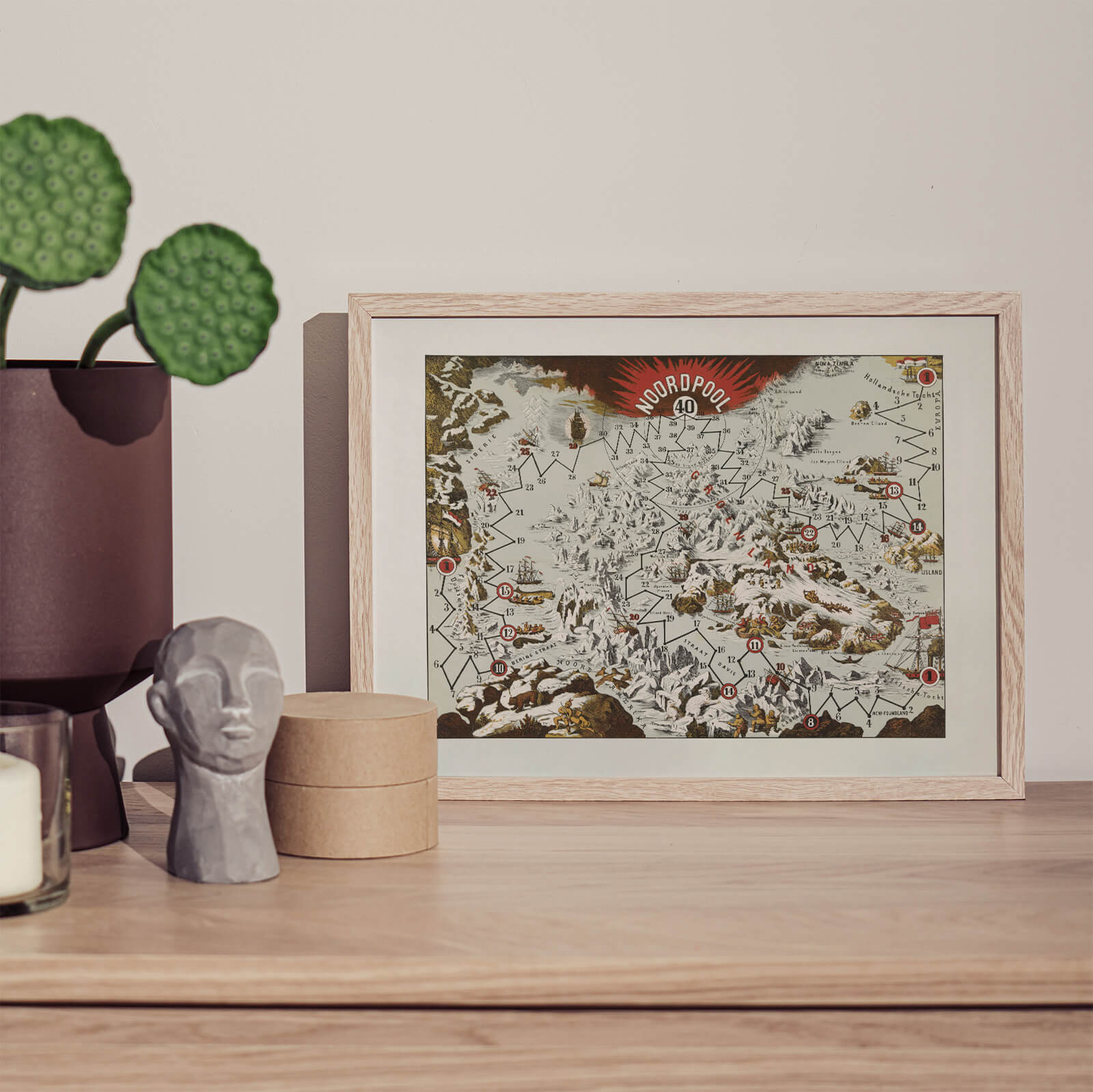 Plakat med et vintage kart over Nordpolen. Kartet ble illustrert av det nederlandske forlagsselskapet Nijgh & Van Ditmar en gang mellom årene 1869-1907.