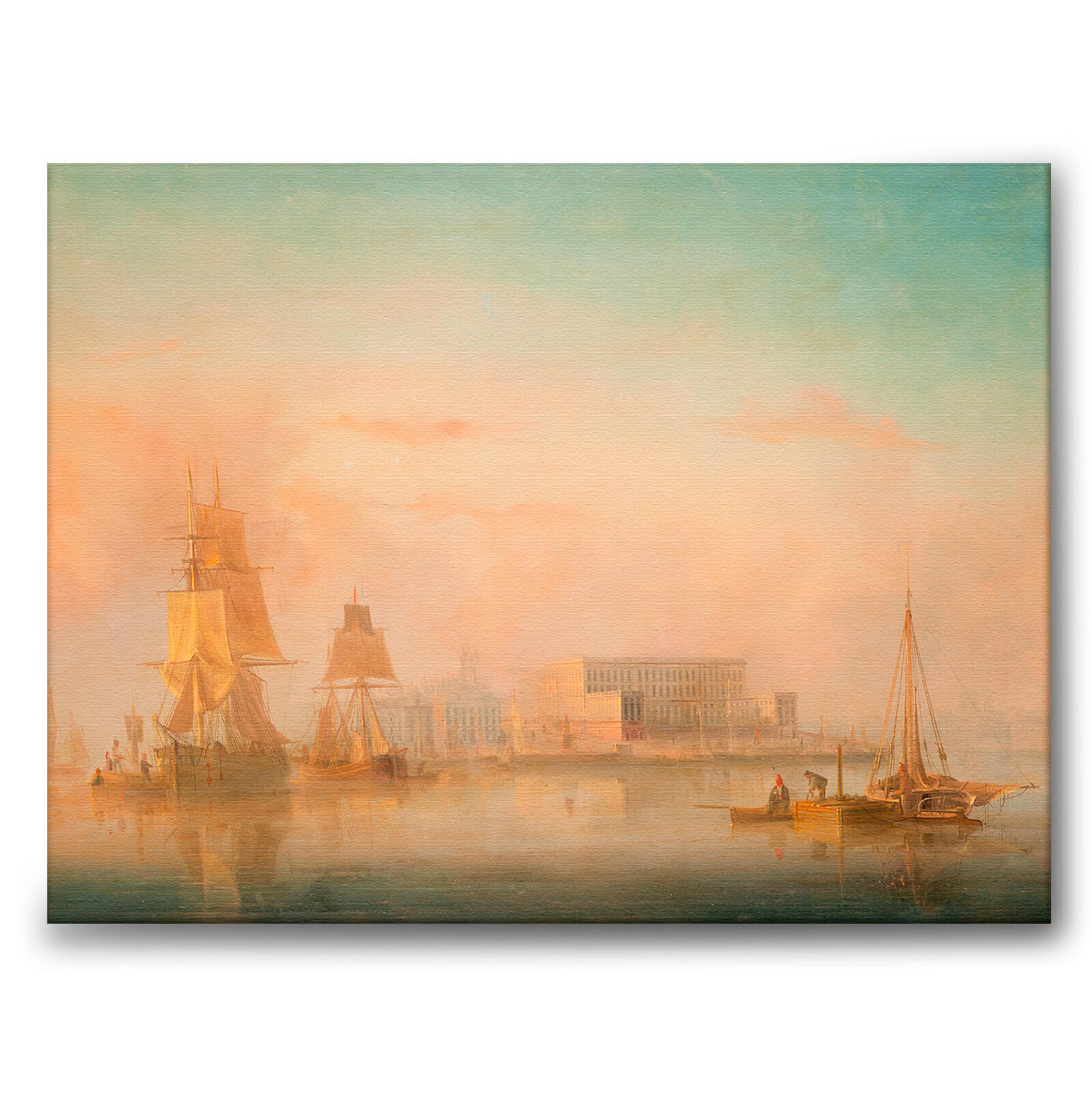 Lerretstrykk på Stockholm-strømmen der kongeslottet er synlig i morgentåken. I forgrunnen kan du se seilskuter for anker. Cedergren er kjent for sine skipsportretter, som blant annet kan oppfinnes det maritime historiske museum . Før han ble kjent for sin kunst, jobbet han blant annet som skipsgutt og snekkerlærling.