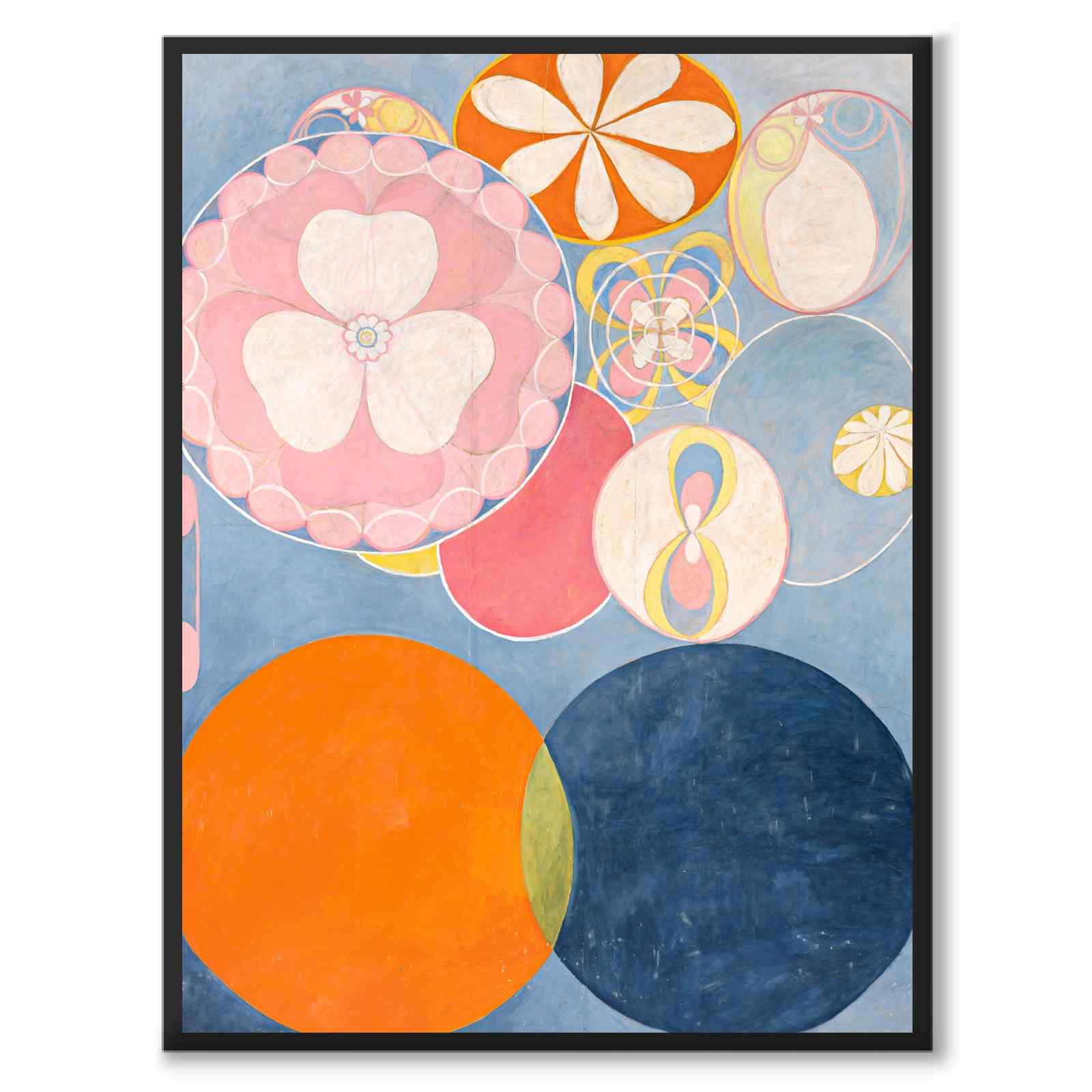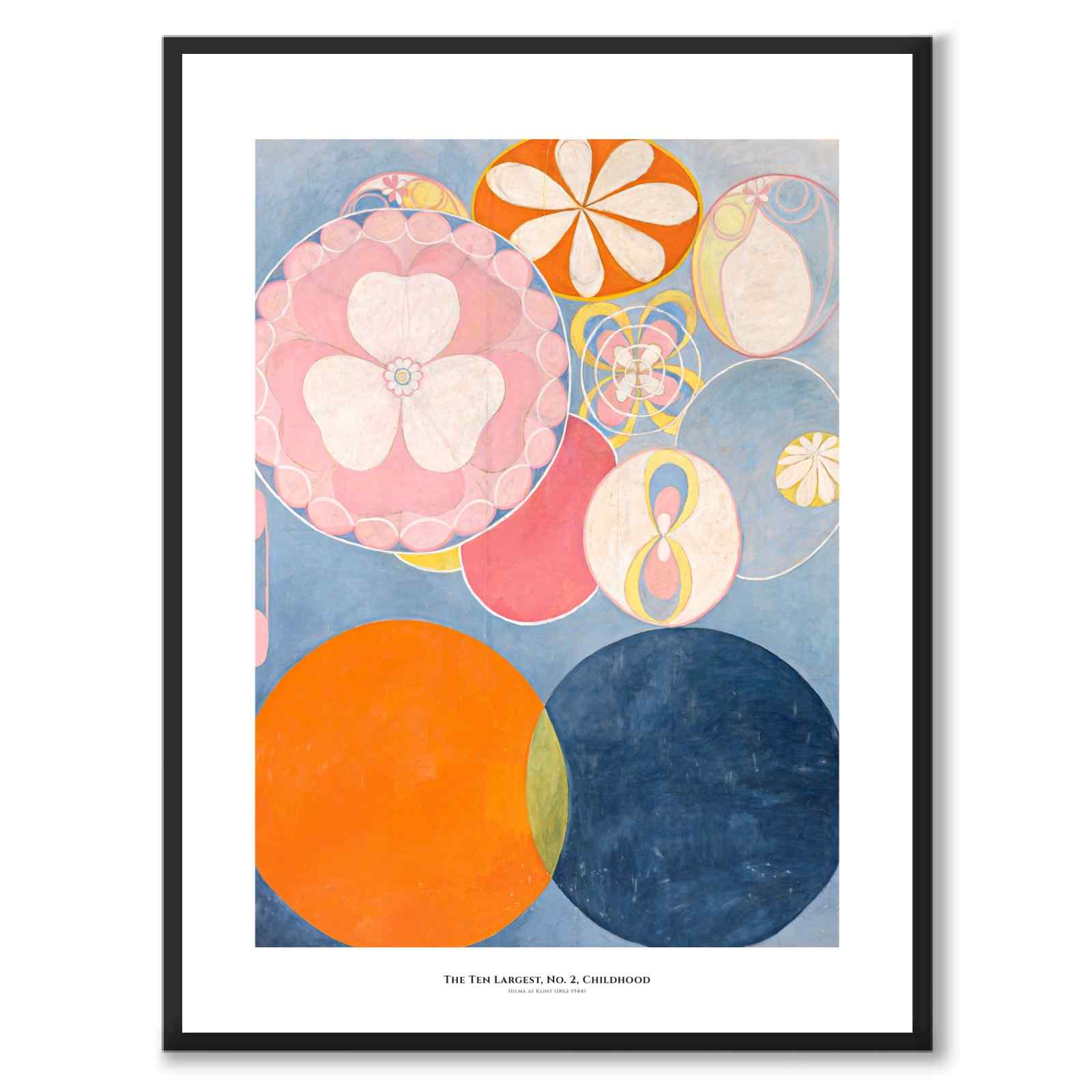 Plakat med maleriet Gruppe IV, nr. 2. De ti største nr. 2 - barndom av Hilma af Klint (engelsk tittel: De ti største nr. 2 - barndom).