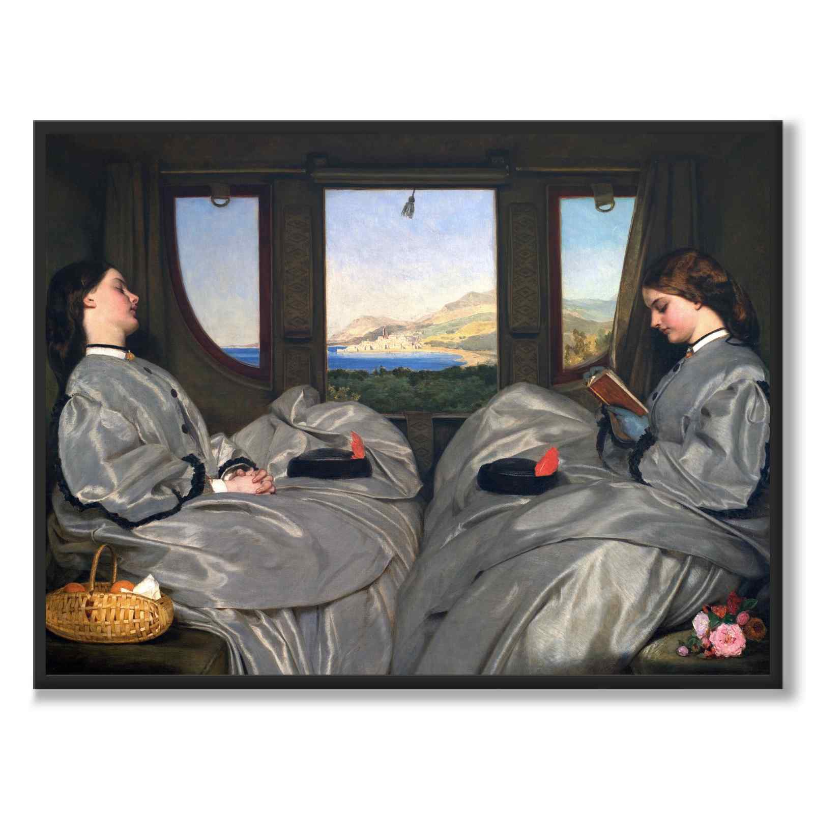Dette maleriet skaper en fascinasjon blant annet gjennom sitt speilbilde av identisk kledde kvinner. Kvinnene sitter sammen i en trang togkupé, hvorfra man kan se ut over den solbelyste kysten nær Meudon i Sør-Frankrike. Den ene jenta hviler og den andre leser fra en bok.