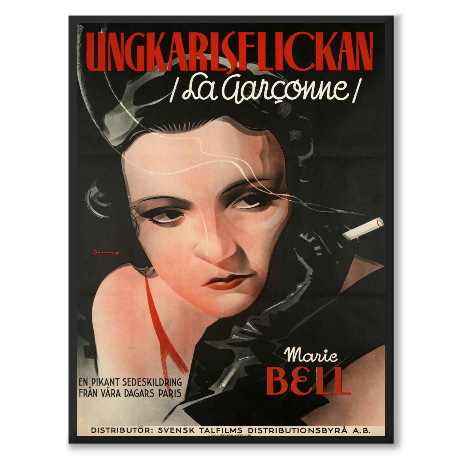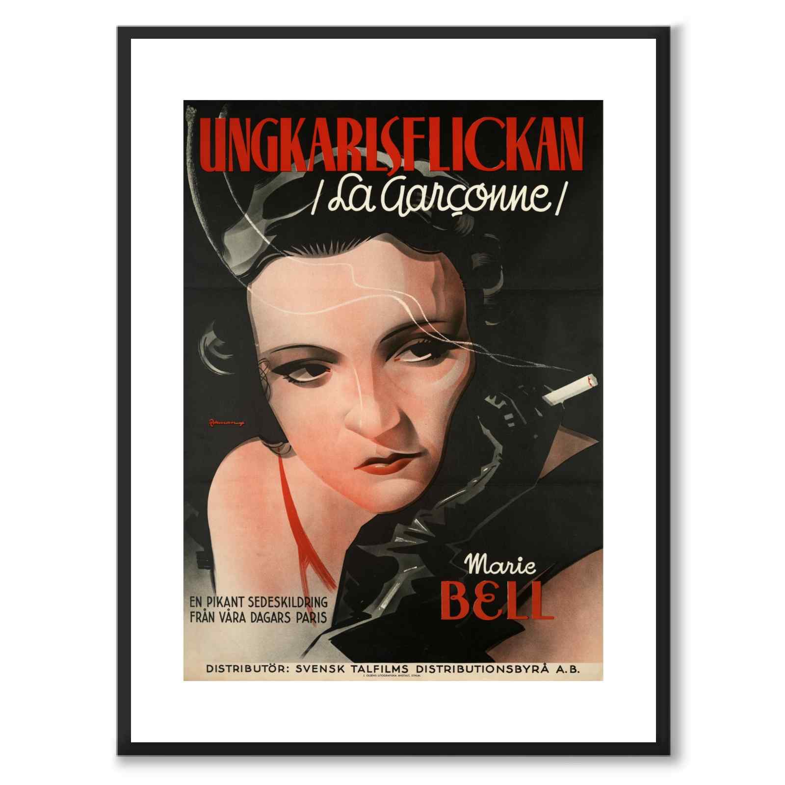 Plakat av La Garçonne , med den strålende Marie Bell i hovedrollen. Denne ikoniske filmen fra 1936 tilbyr en dristig og fremtidsrettet skildring av en ung kvinnes liv og utfordringer i 1930-tallets Paris.