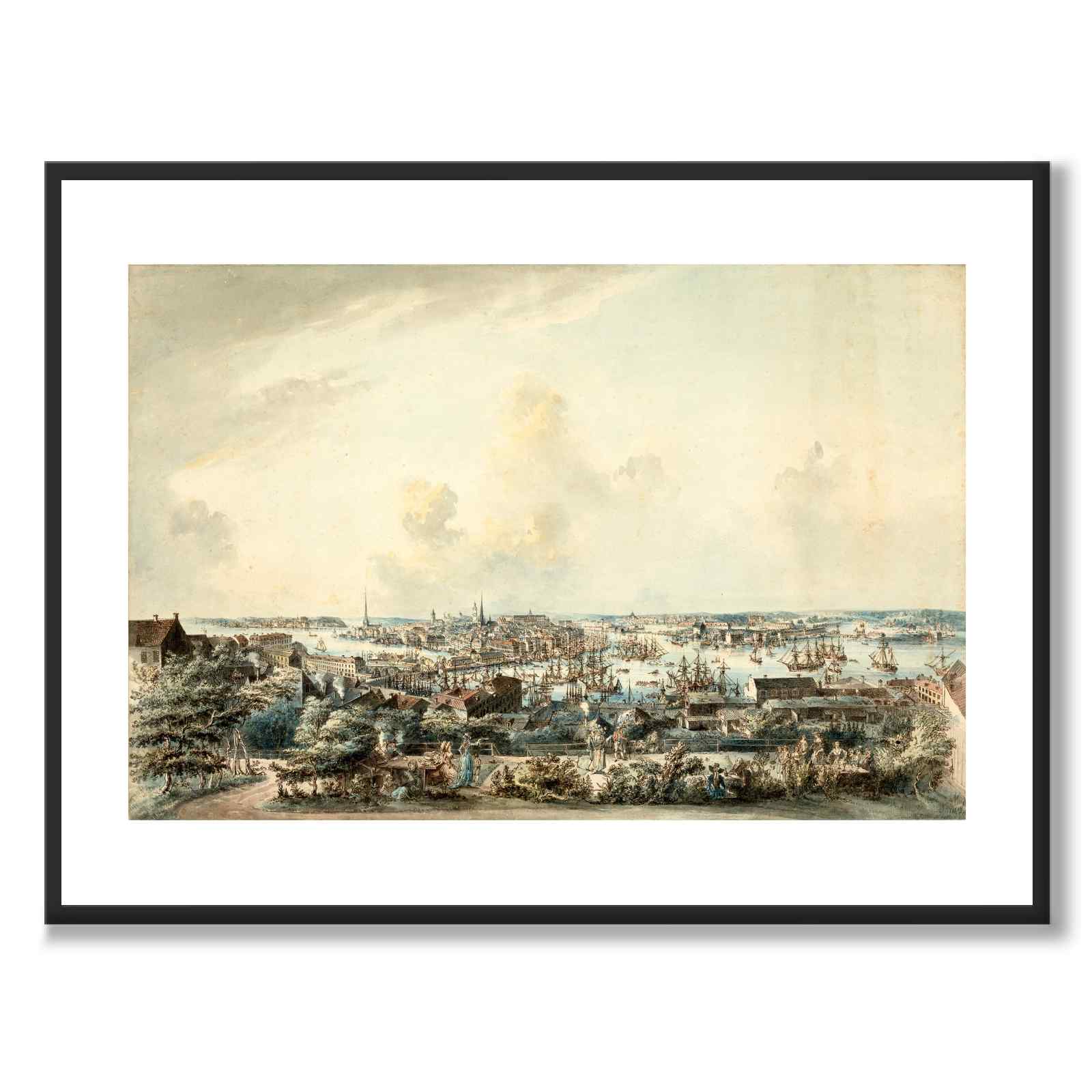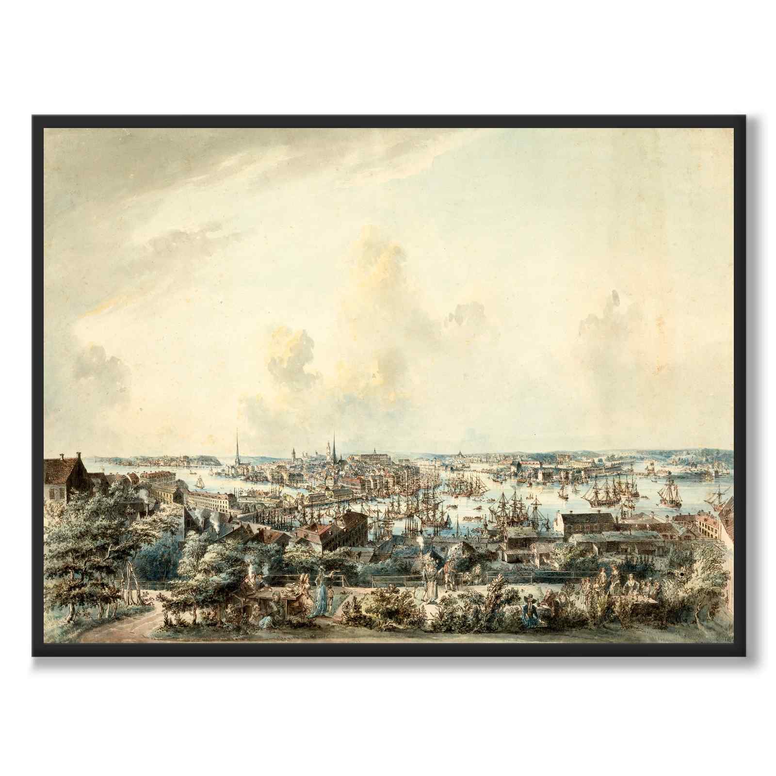 Plakat med maleriet " Utsikt fra Mosebacke" fra 1790-tallet malt av Johan Fredrik Martin som var en svensk maler, mest kjent for sine by- og landskapsmalerier.