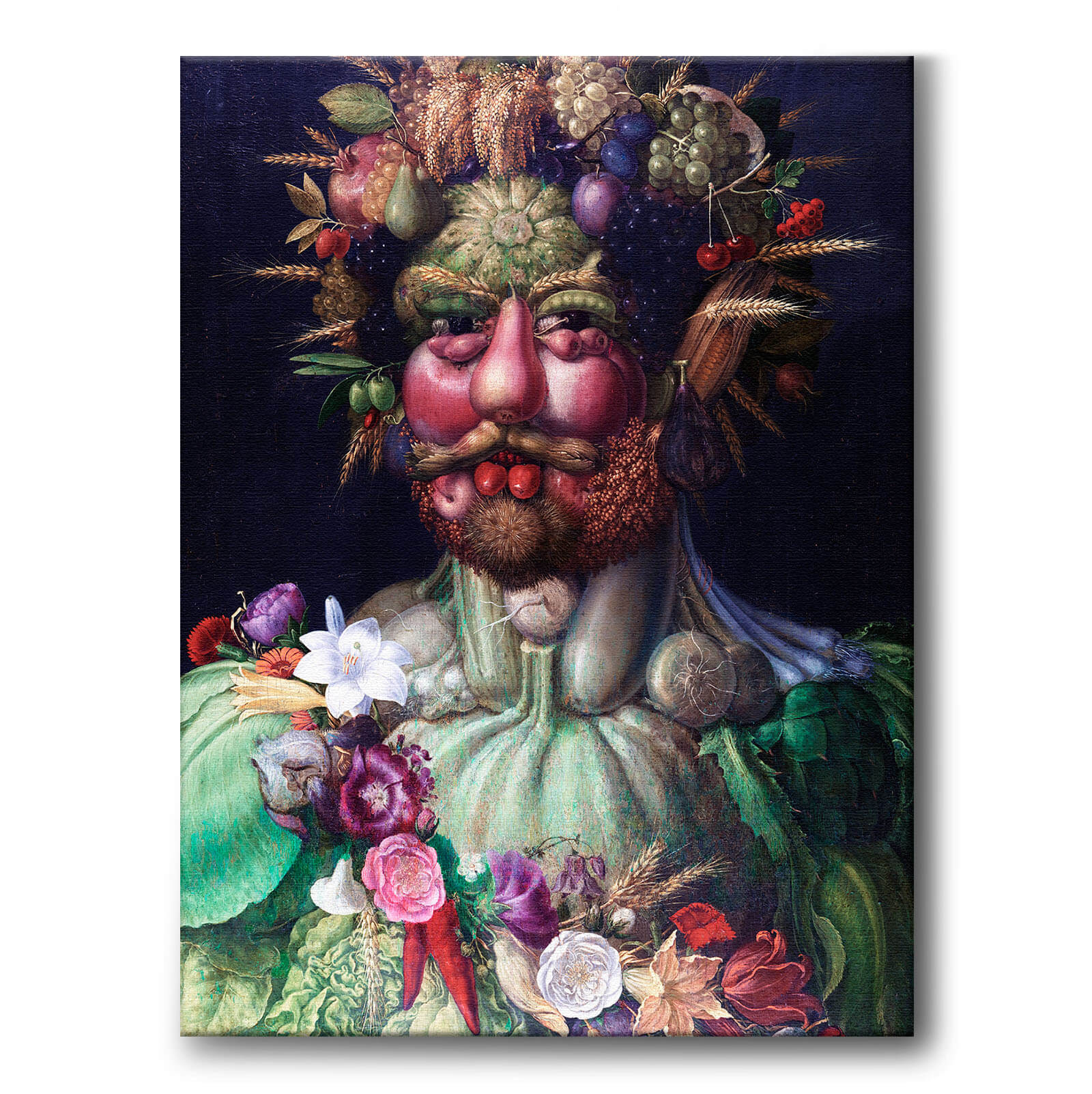Lerret med det svært kjente maleriet Vertumnus fra 1591. Kunstneren bak verket het Giuseppe Arcimboldo.