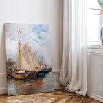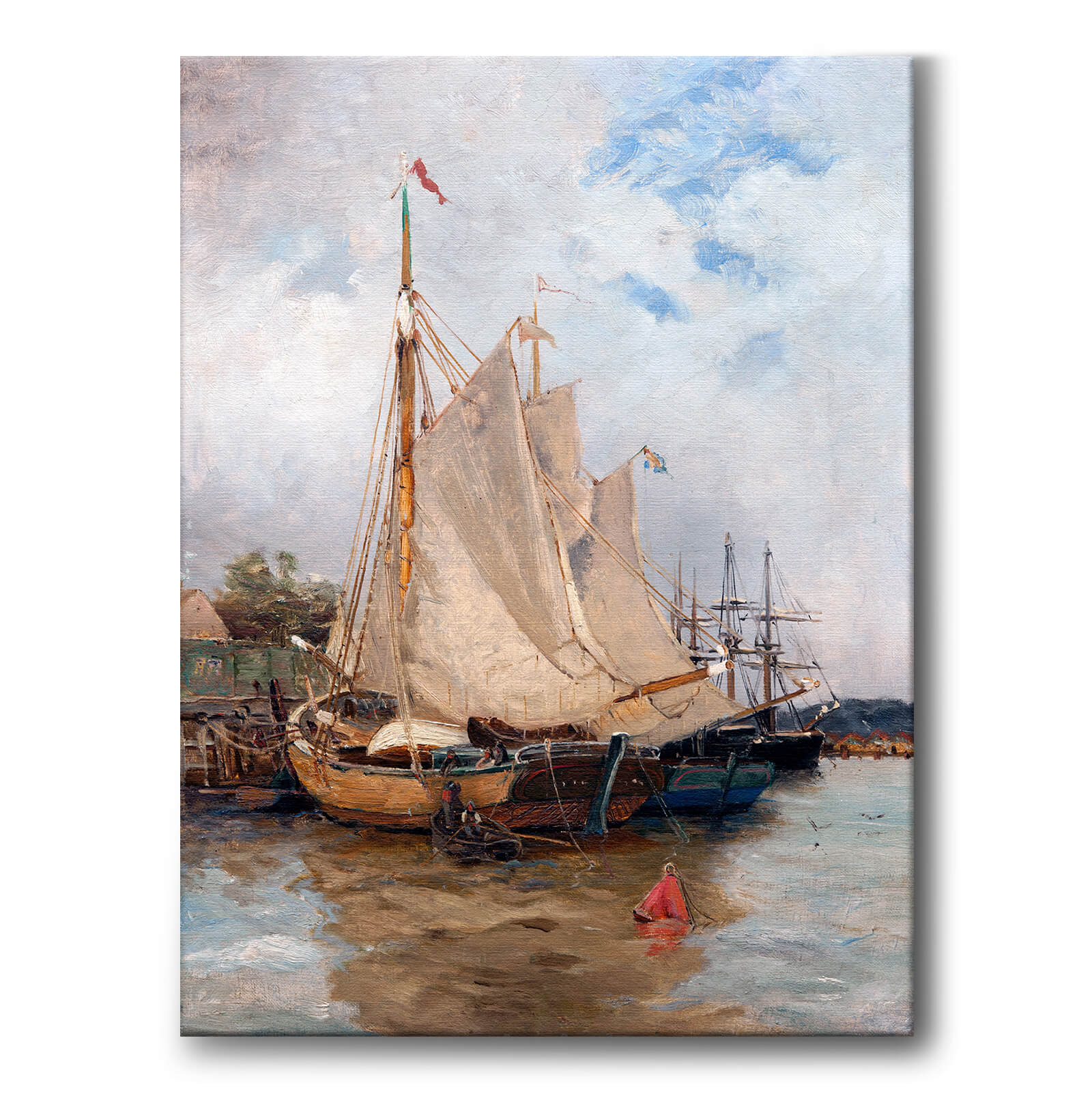 Lerret med det vakre maleriet I hamnen , eller den svenske tittelen: Vid Hamnen . Maleriet ble laget i 1884 av Adolf Fredrik Nordling, en svensk maler.