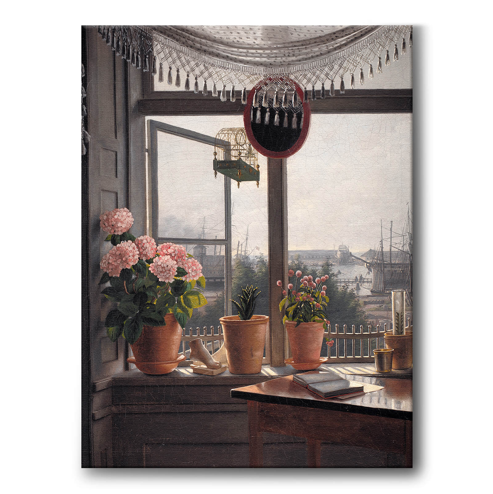 Vakkert lerret med maleriet Utsikt fra kunstnerens rom, laget i 1825 av den norsk-danske maleren Martinus Rørbye.