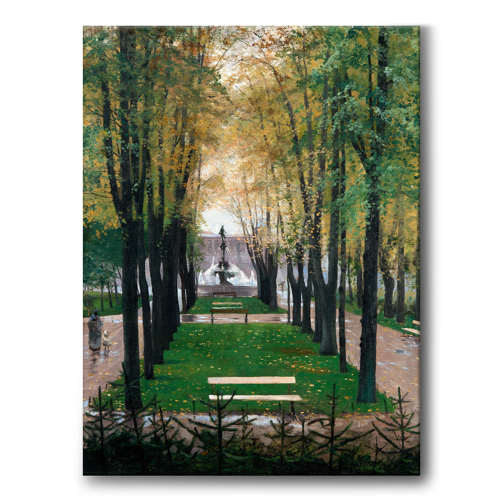 Lerret med maleriet View from the Windows of the Fürstenberg Gallery. Maleriet ble laget mellom 1883 og 1885 av den svenske kunstneren Hugo Birger. Motivet er malt fra et perspektiv fra vinduet til Fürstenbergska galleriet med utsikt over Brunnsparken i Gøteborg.
