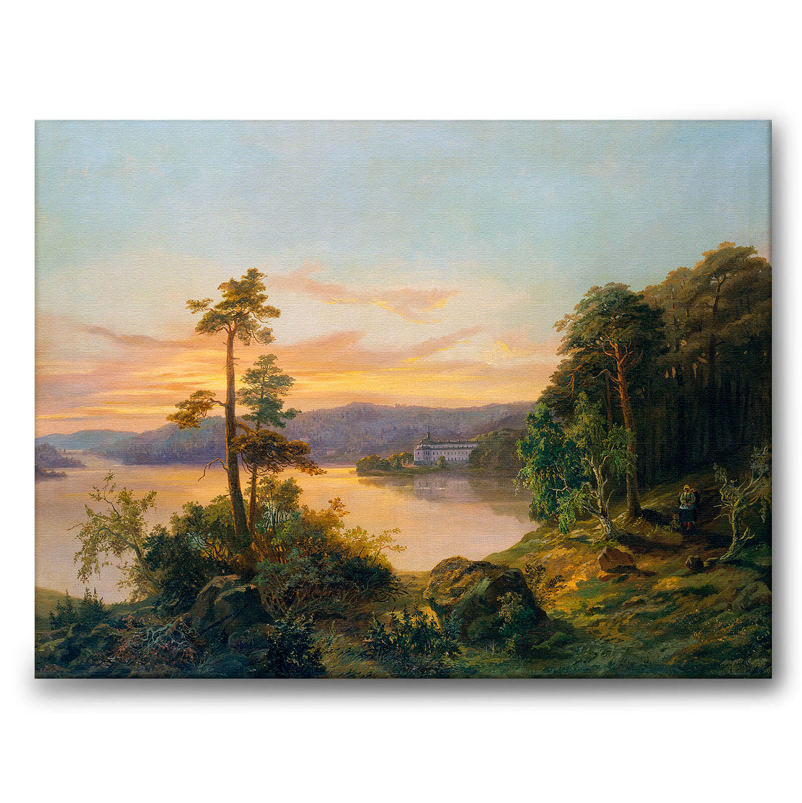 Lerret med et vakkert maleri av Ulriksdal slott malt av kong Karl XV av Sverige (1826–1872).