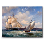 Plakat med et vakkert maleri malt av kunstneren Arnold Plagemann i 1856. Det store motivet viser skip over et bølget hav og i bakgrunnen skimtes land med Vinga fyr .