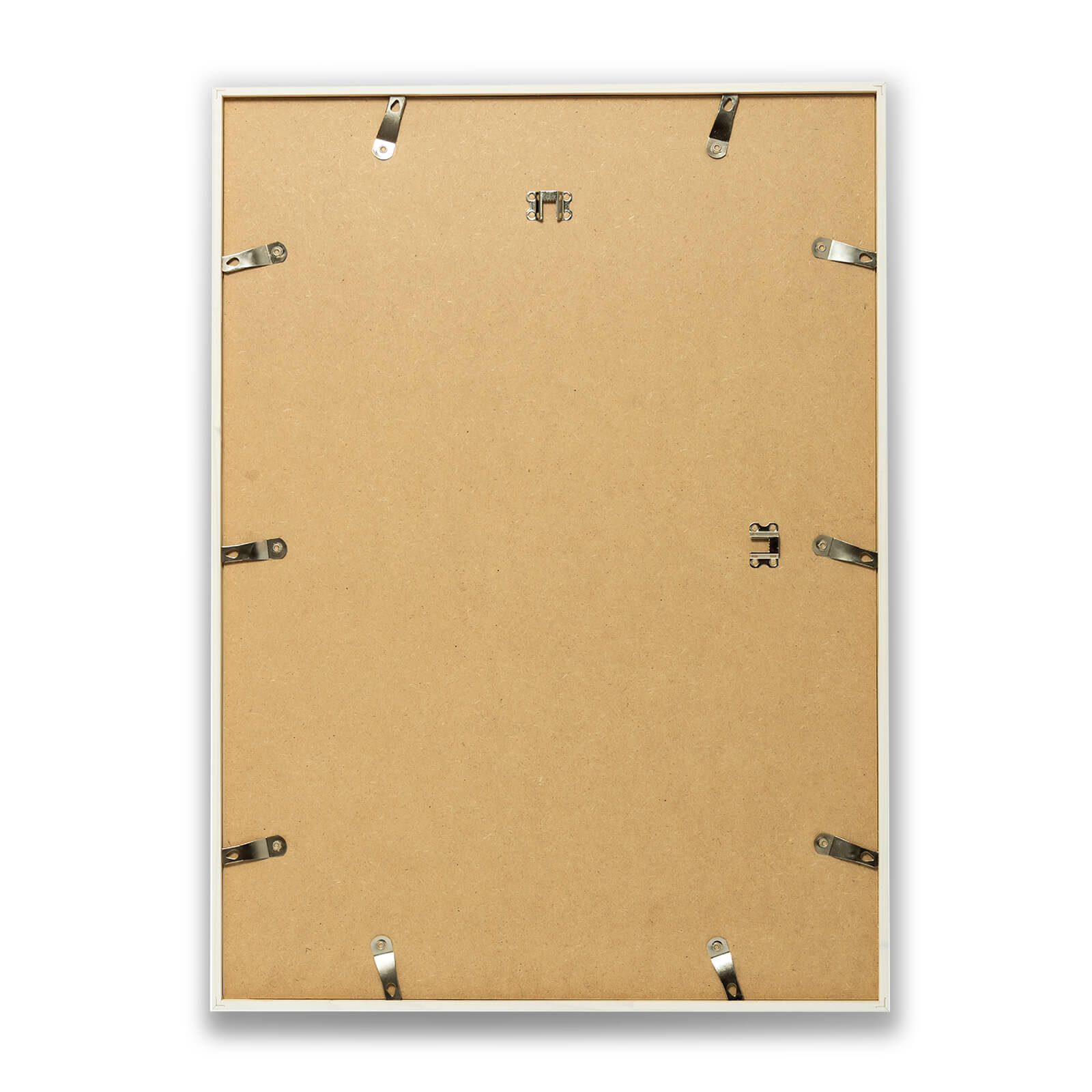 Alle rammer har metallhengere på baksiden slik at de kan henges både vertikalt og horisontalt. Rammen har vriklips på baksiden som gjør innrammingen veldig enkel og jevn.
