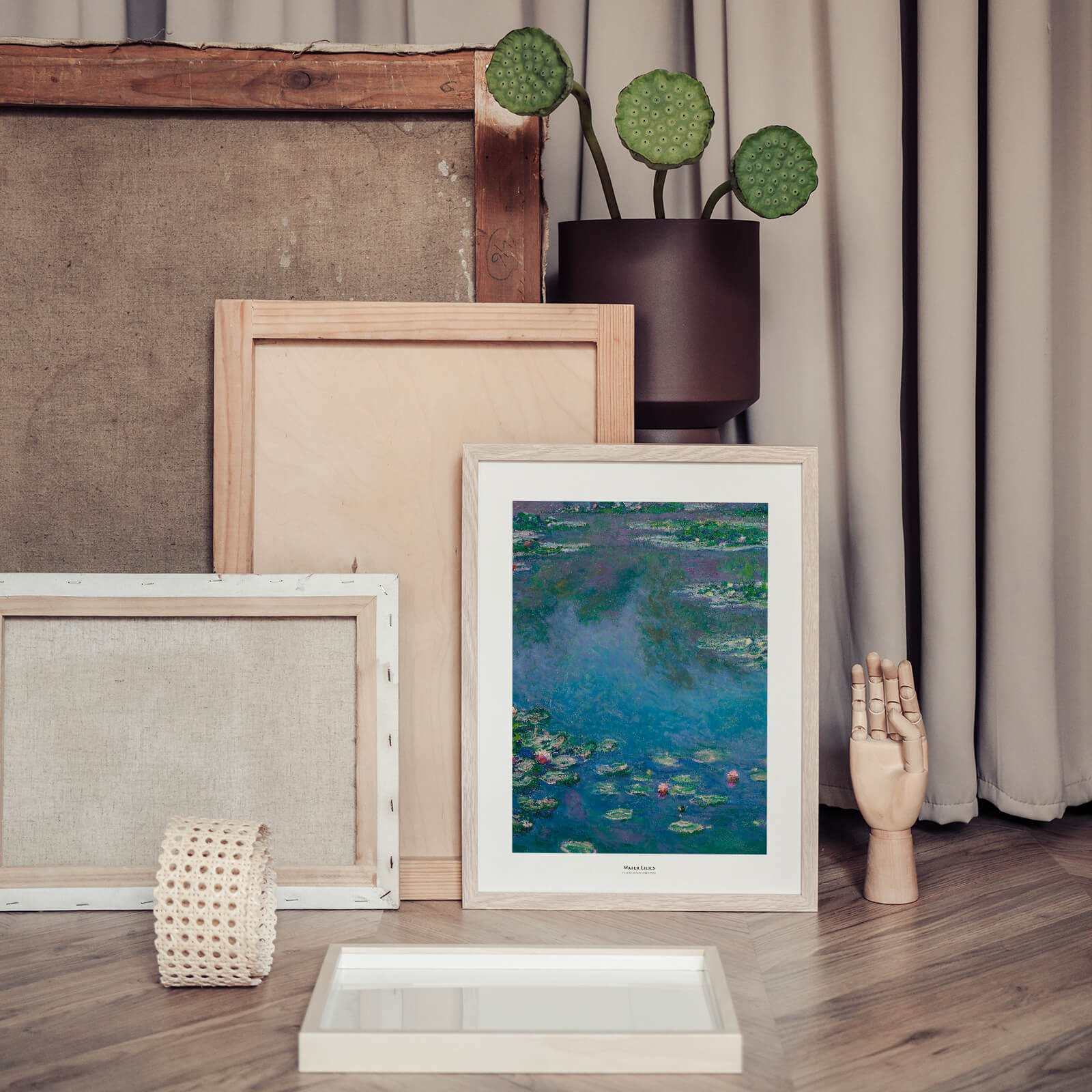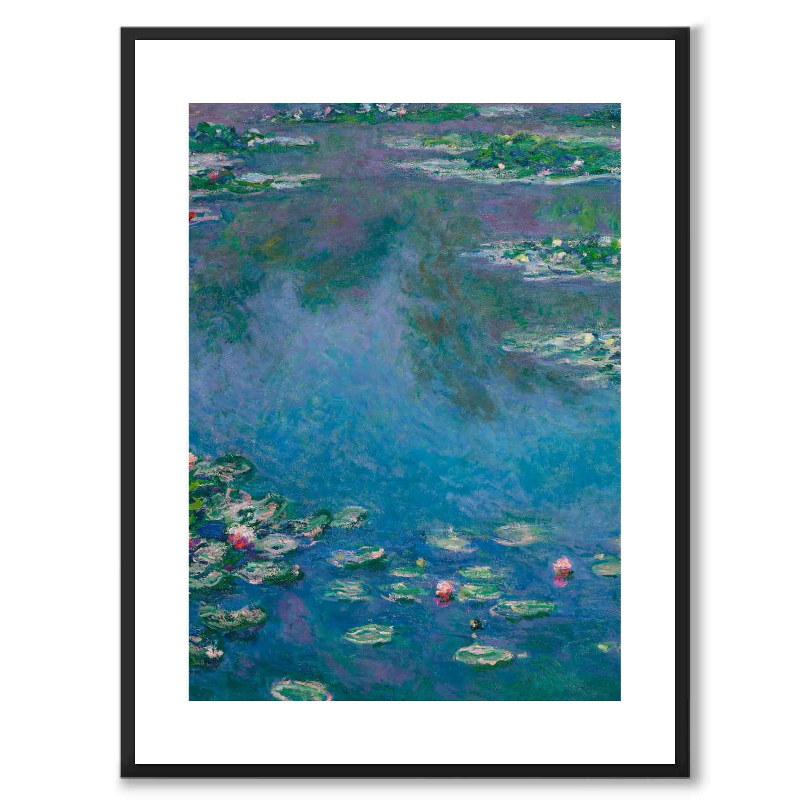Plakat med det kjente maleriet Water Lilies av Claude Monet fra 1906 . "Et øyeblikk, ett aspekt av naturen inneholder alt" sa Claude Monet, og refererte til hans senere mesterverk - de forskjellige vannlandskapene han skapte fra hjemmet sitt i Giverny mellom 1897 og frem til sin død i 1926.