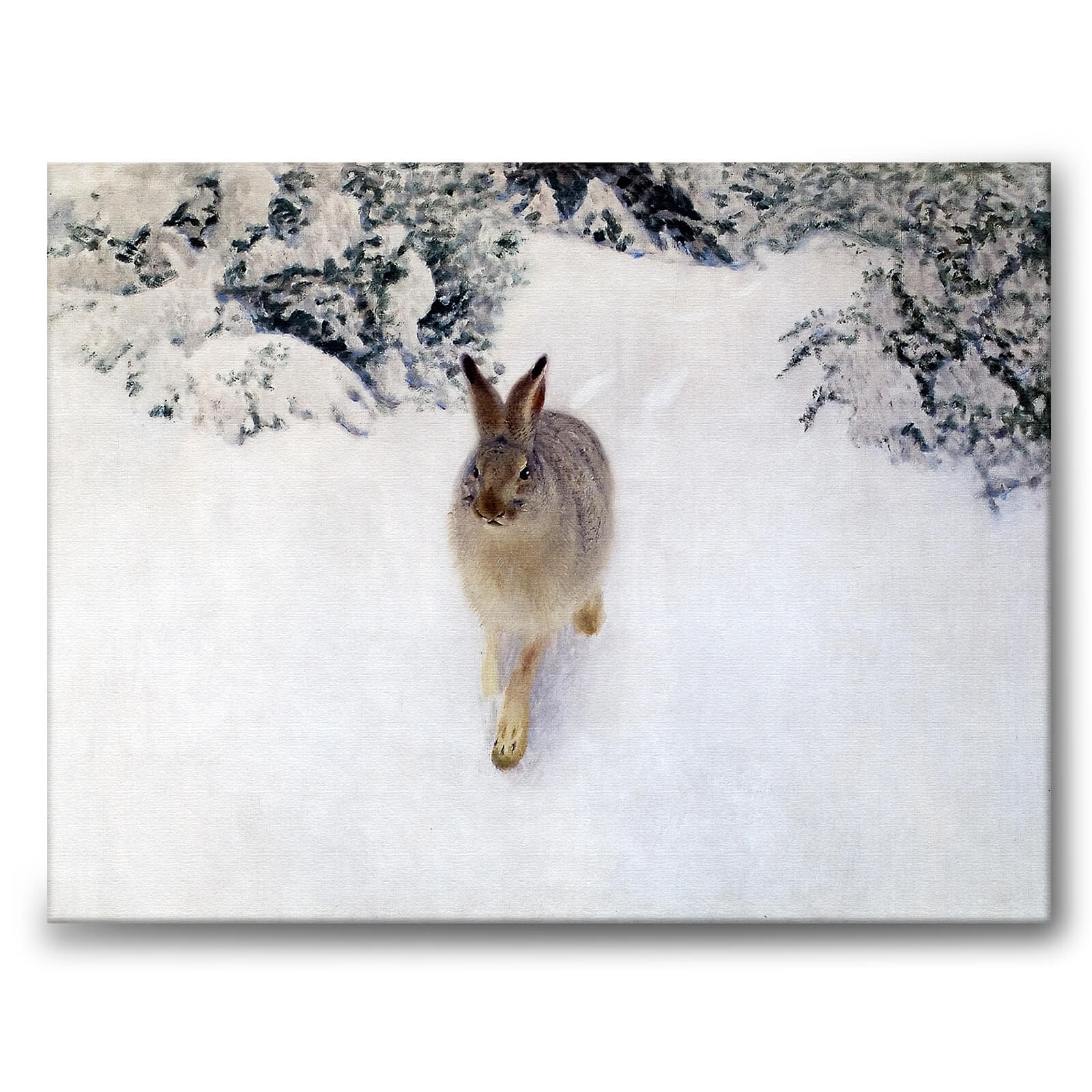 Lerret med maleriet Vinterhare av Bruno Liljefors fra 1905. På maleriet ser vi en vakker hvit hare som løper i et vinterlandskap.