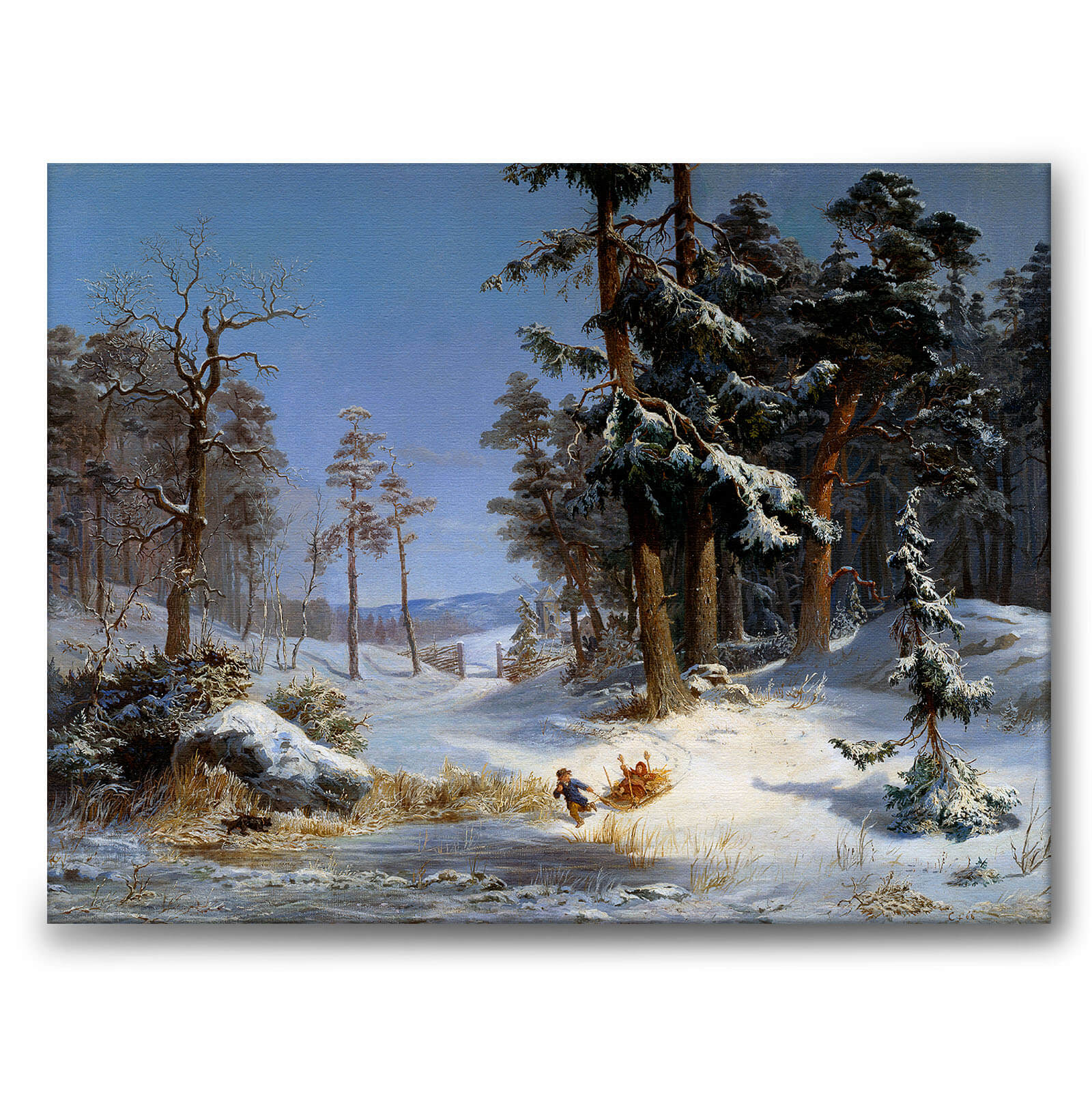 Lerret med et vakkert maleri av et vinterlandskap på Royal Djurgården i Stockholm malt av kong Karl XV av Sverige (1826–1872).