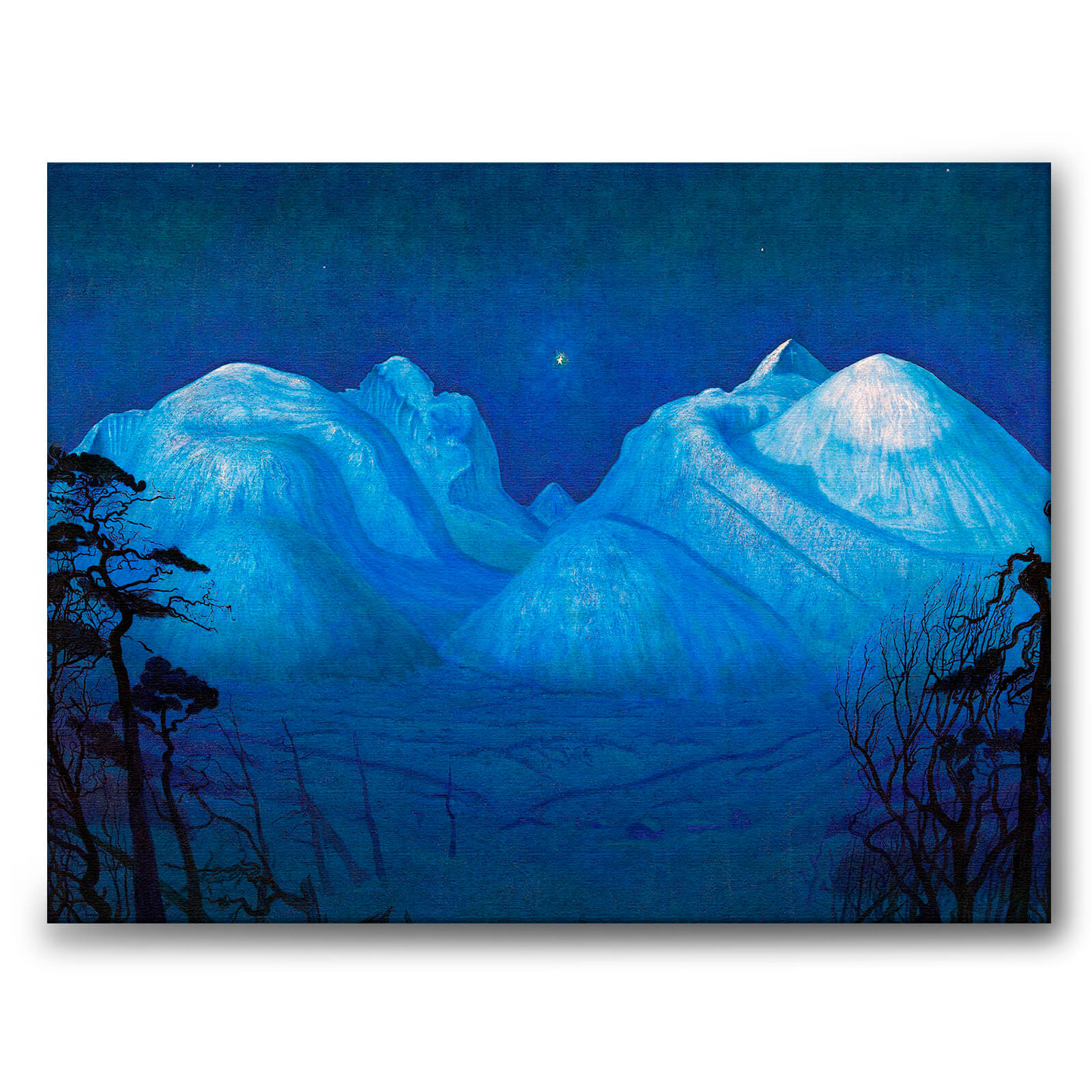 Lerret med maleriet Vinternatt i Rondane , også kjent som Vinternatt i Fjellene, av Harald Sohlberg.