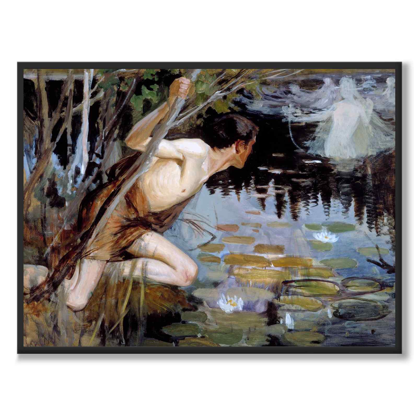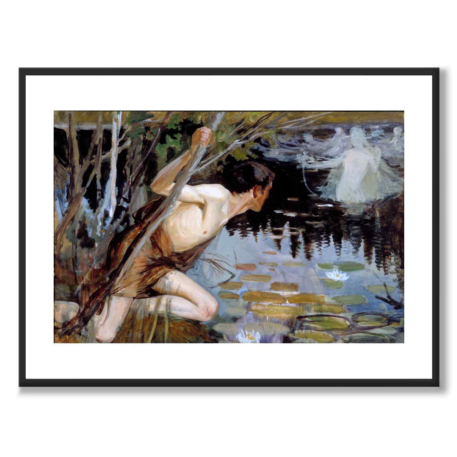 Plakat med et vakkert maleri av Albert Edelfelt fra 1896. Maleriet heter Yngling och najad og i det ser vi en ung mann som er fengslet av en kvinnelig eventyrskapning i en innsjø med vannliljer.