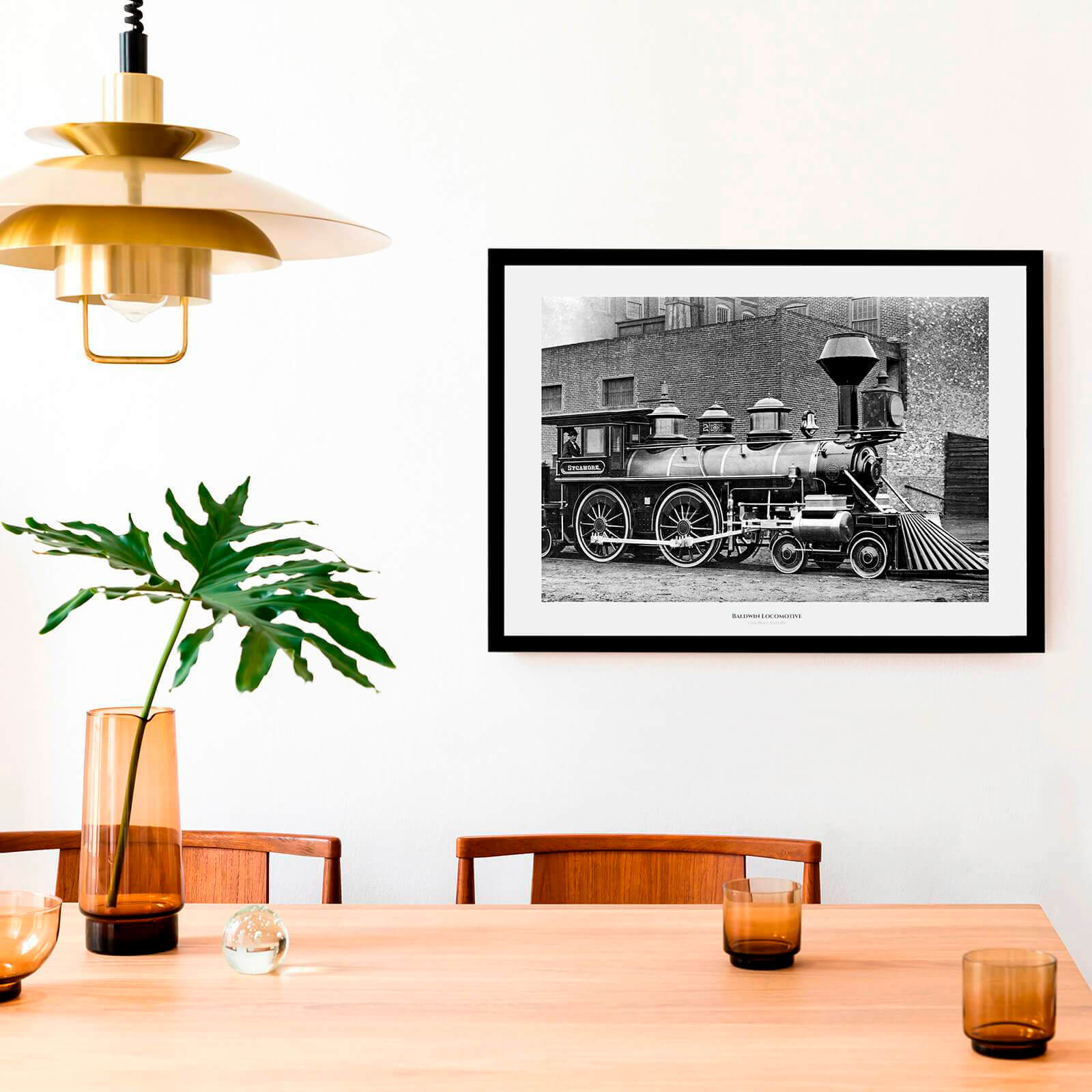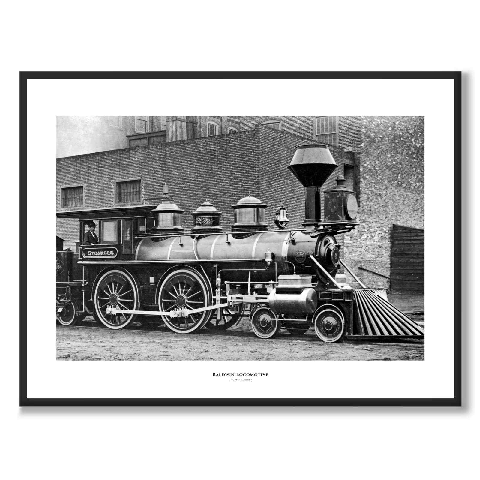 A locomotive from the Baldwin Locomotive Works in Philadelphia in the 19th century. The company sold steam locomotives between 1825-1956, and was the world leader for decades. When demand shifted to diesel-powered locomotives, they could not maintain their competitiveness and filed for bankruptcy in 1972.
