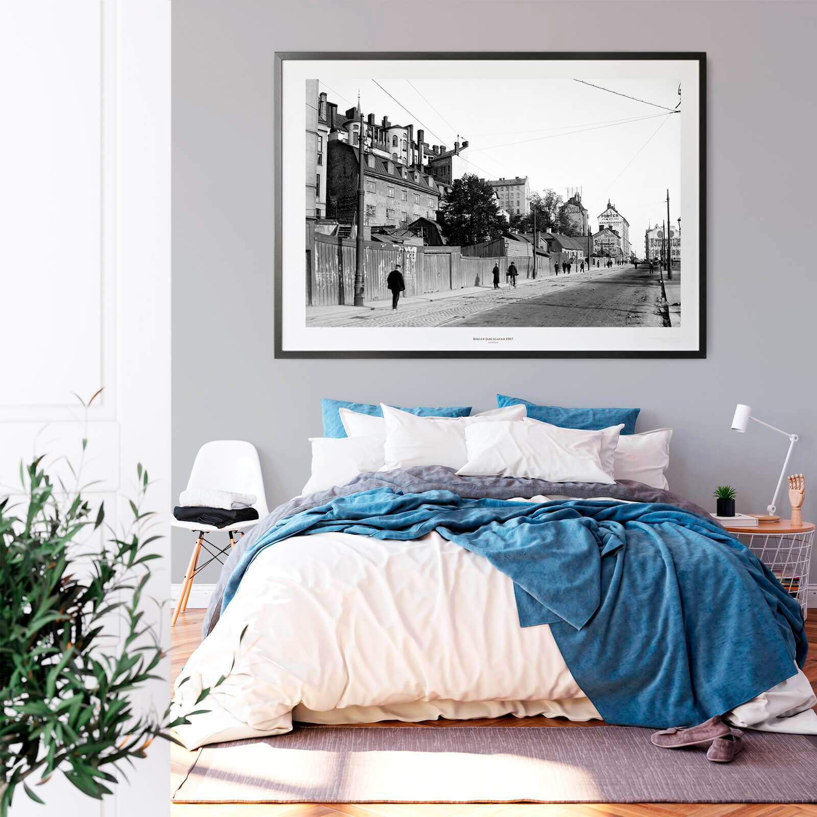 An old picture of Stockholm. The year is 1907 and in the picture we see Birger Jarlsgatan 35 to 37 north at Roslagstorg. Today, there are exclusive restaurants here such as Miss Voon, bars such as Oxid and much more. A big change has happened in 110+ years!