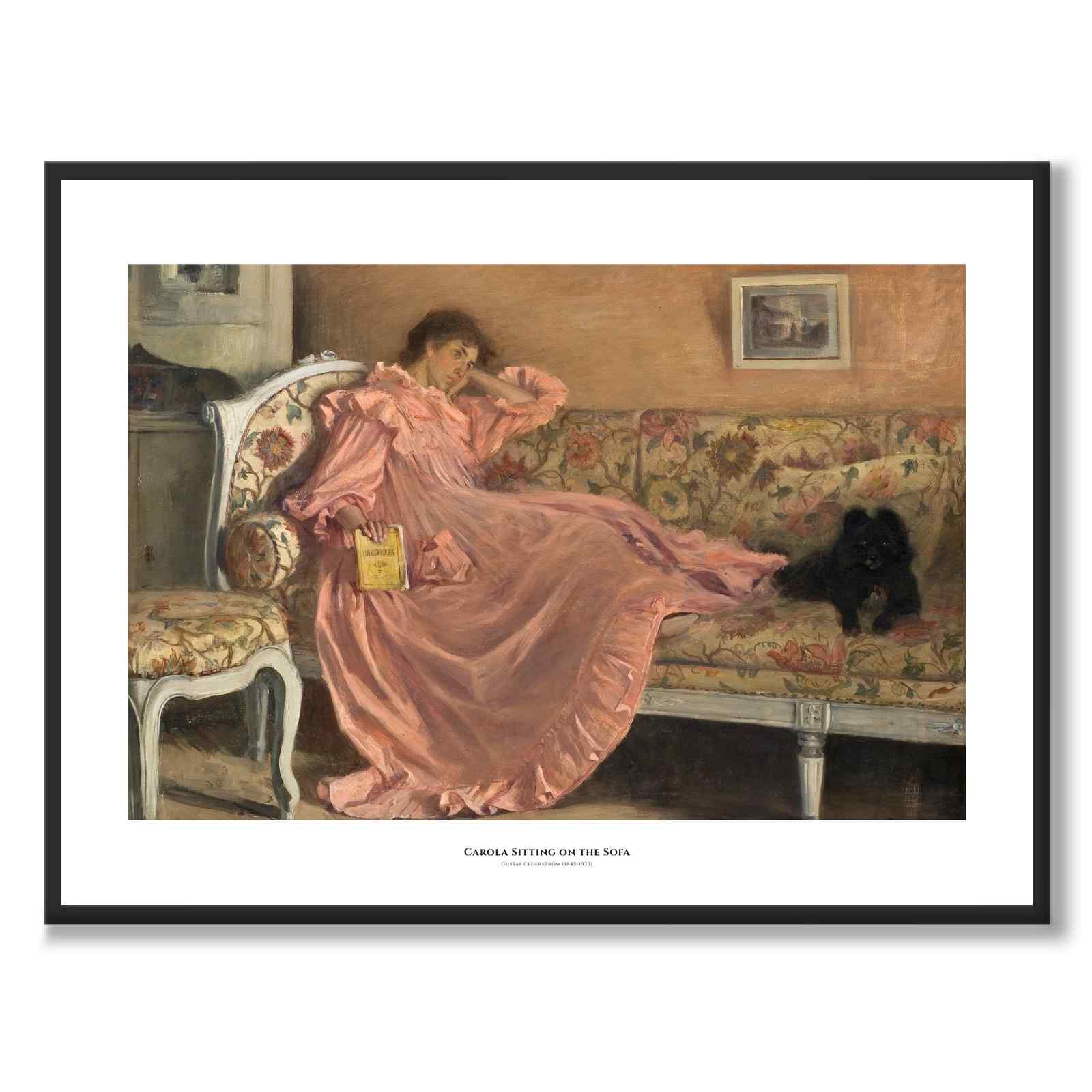 Poster with the painting Carola Sitting on the Sofa by Gustaf Cederström. The painting is a portrait of Gustaf's daughter and sculptor Carola Cederström.