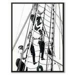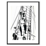 Four cadets in the Swedish navy climb into the mitt of a ship in 1968.