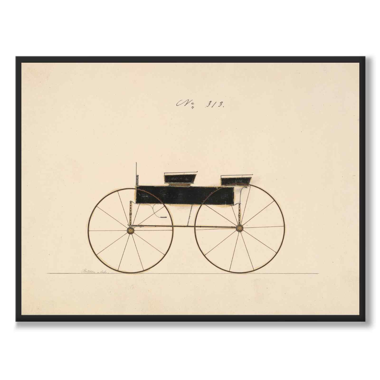 Poster with a design sketch of the iconic American carriage manufacturer Brewster & Company. Of all the American carriage makers, none was so highly regarded for design, finish and quality as Brewster & Company.