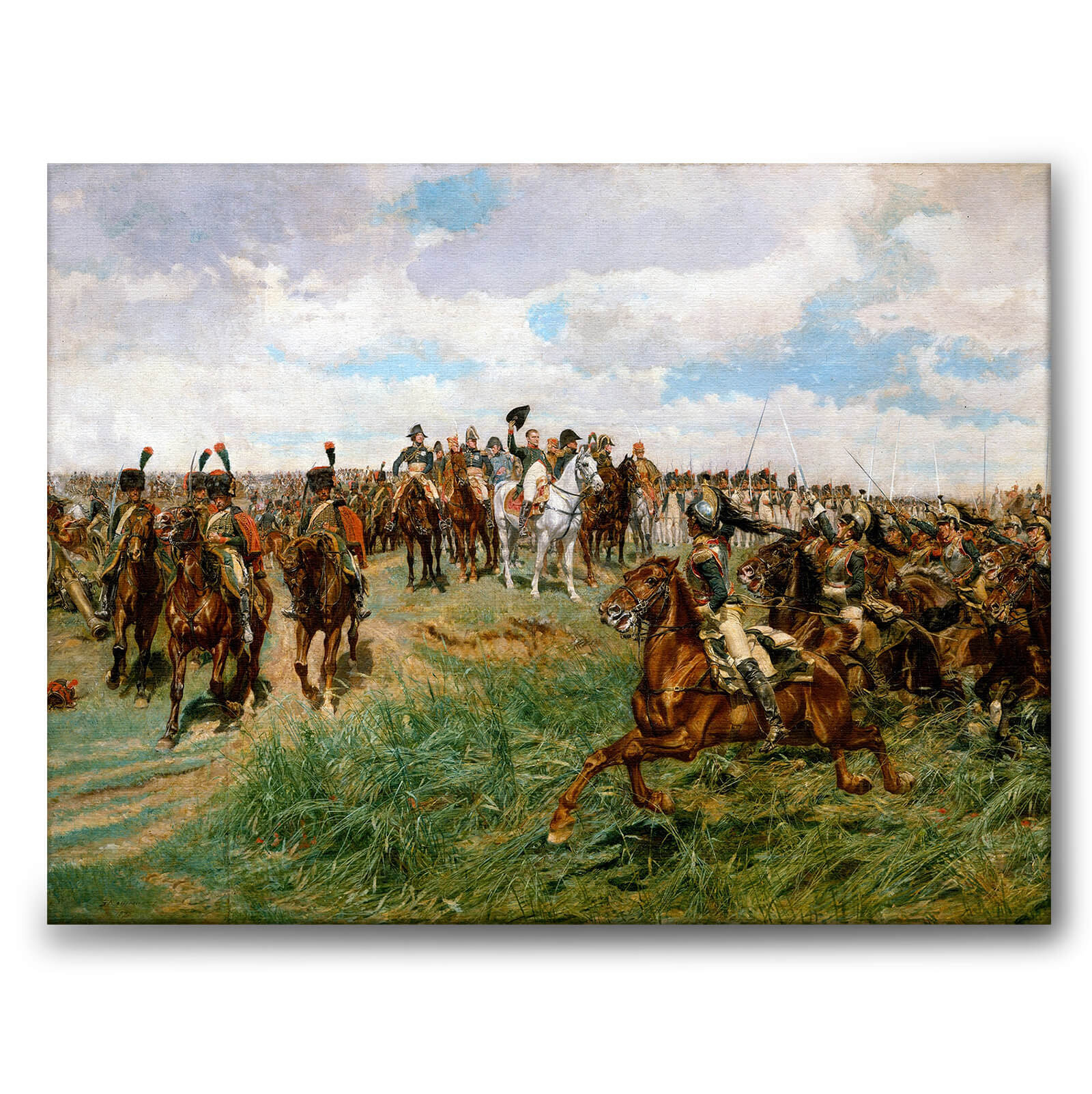 Canvas print of the 1807 painting, Friedland, created by Ernest Meissonier - a French painter. For Meissonier, detailed historical accuracy became a passion, as we see in this painting depicting one of Napoleon Bonaparte's greatest victories.