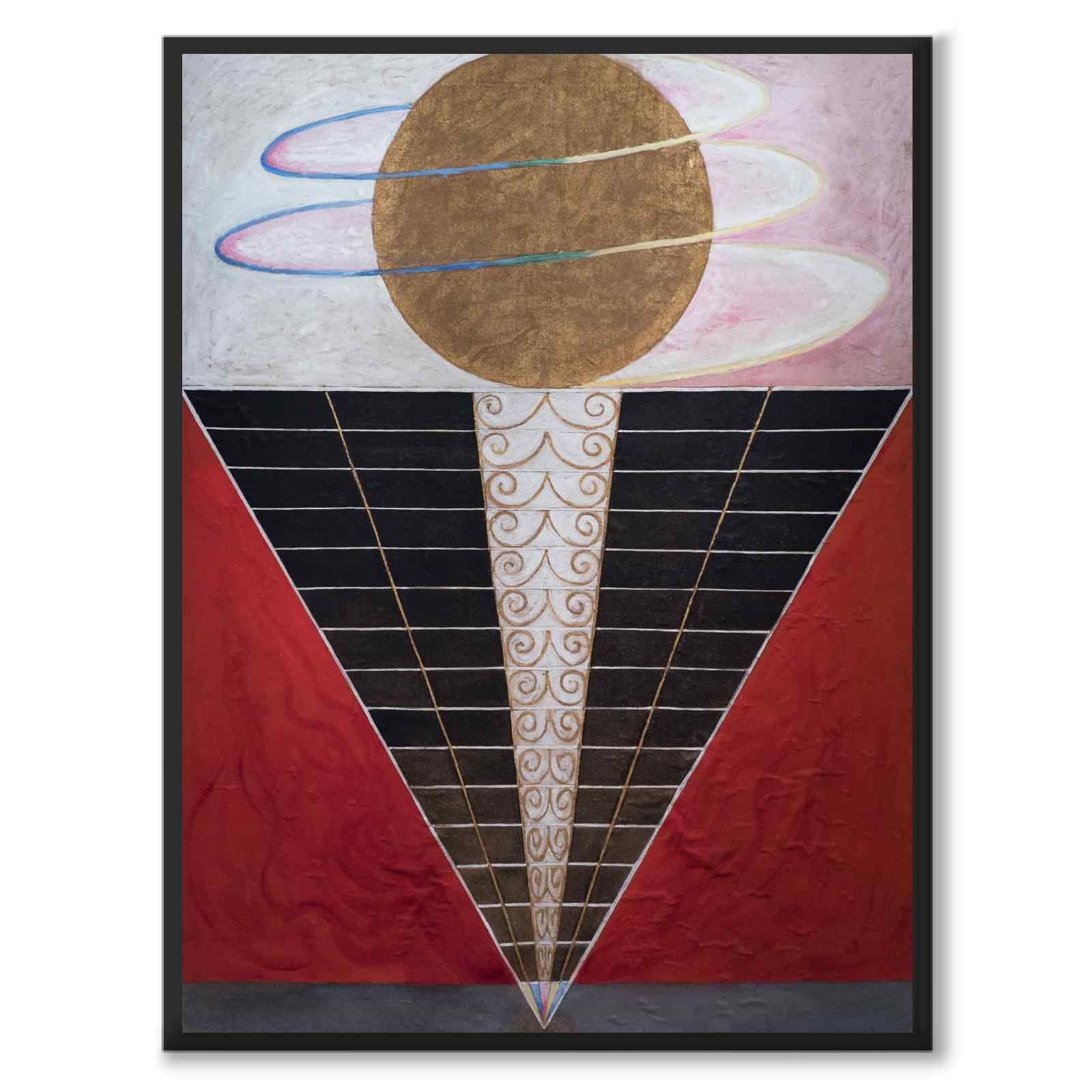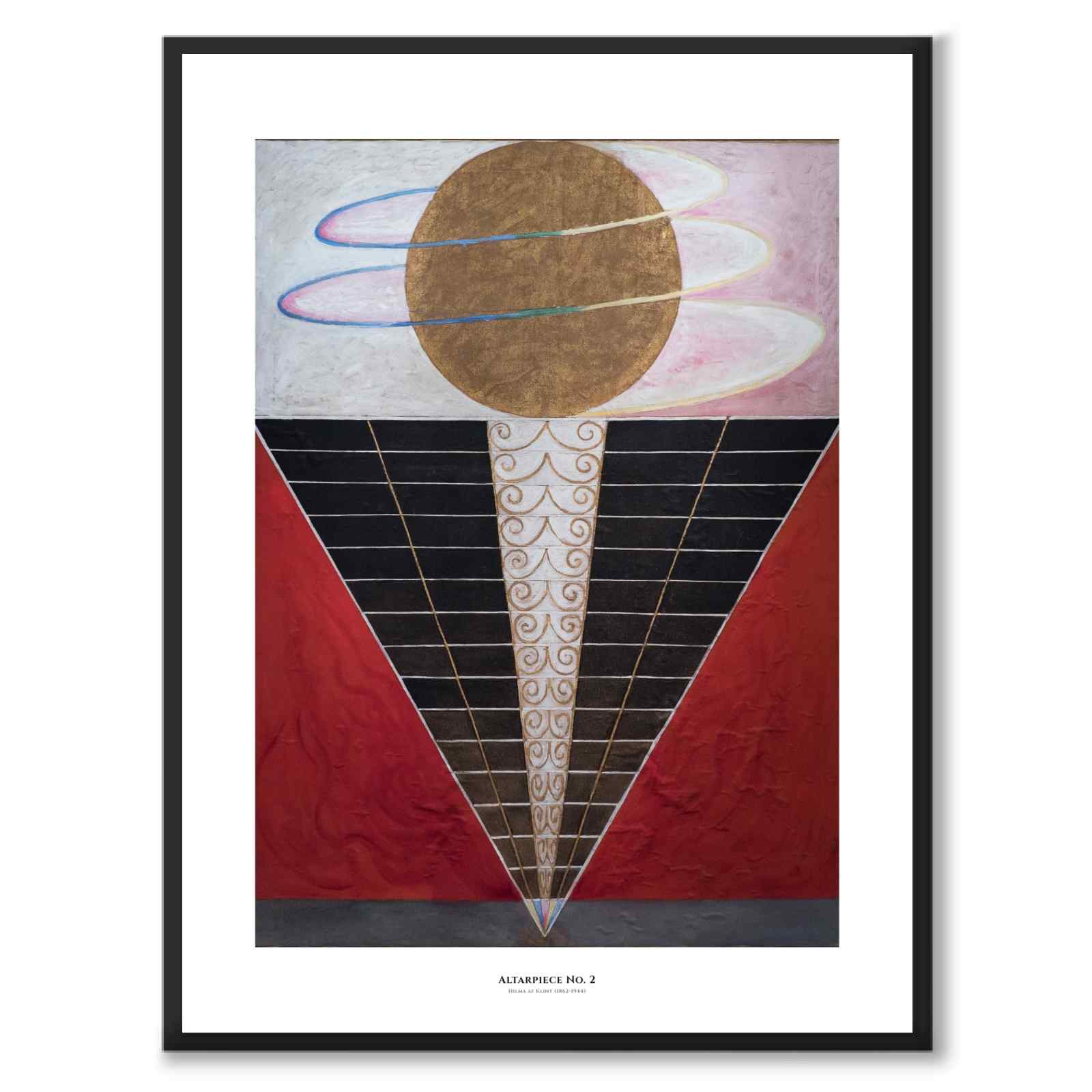 Poster with the painting Altarpiece No. 2 created in 1915 by Hilma af Klint - one of Sweden's most famous artists. The painting is one of a series of Temple Paintings and the inverted triangle in the painting is meant to symbolize the descent from divine unity into the diversity of the material world.