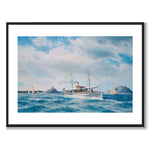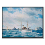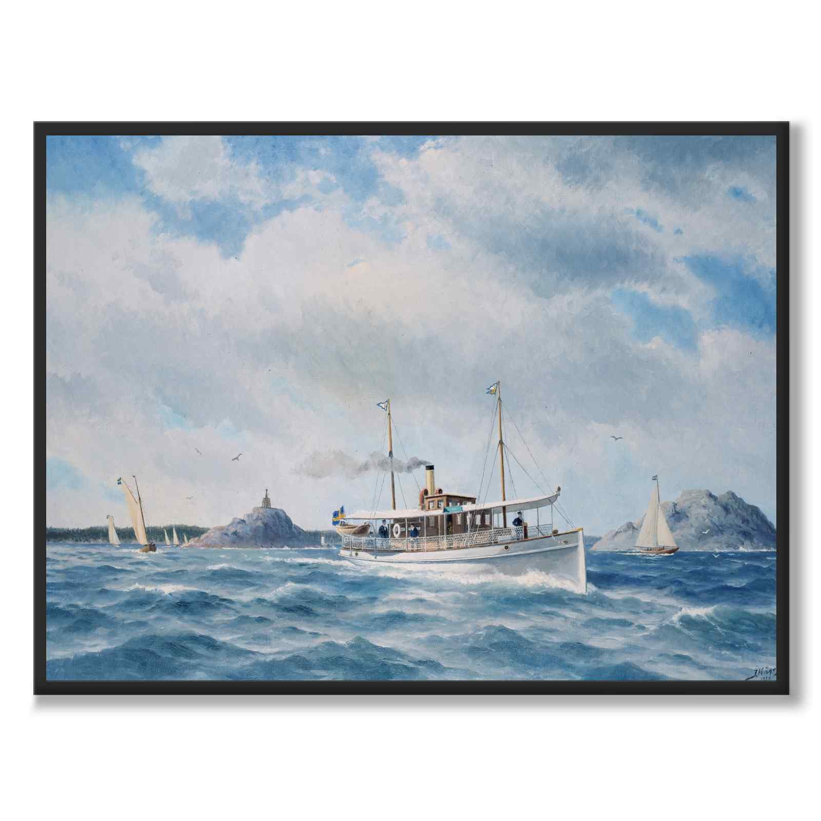 Målningen gjordes omkring 1880-talet och visar ånglustjakten Hongkong sedd från styrbords bog. I bakgrunden syns en skärgård med klippöar, ett sjömärke och en fyr, samt flera seglande jakter.